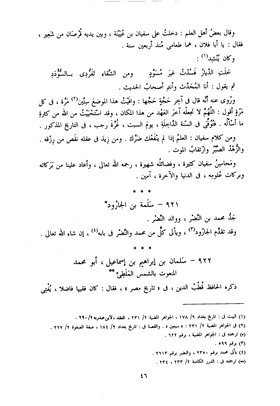 و محاسن سفيان كثيرة، و فضائله شهيرة، رحمه اللّه تعالى، و أعاد علينا من بركاته و بركات علومه، فى الدنيا و الآخرة، آمين.