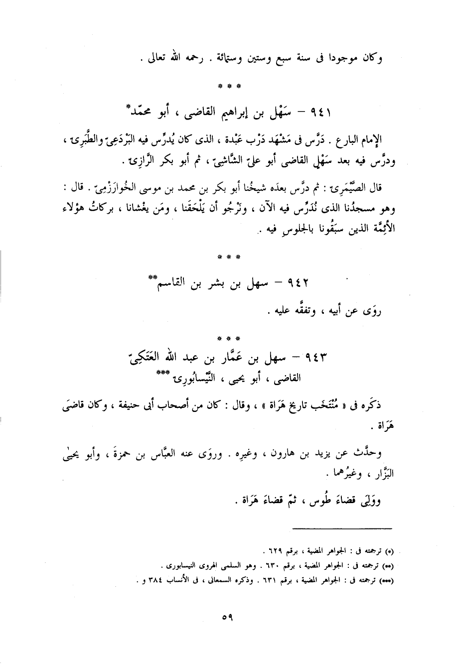 ***) ترجمته فى: الجواهر المضية، برقم 631. و ذكره السمعانى، فى الأنساب 384 و.