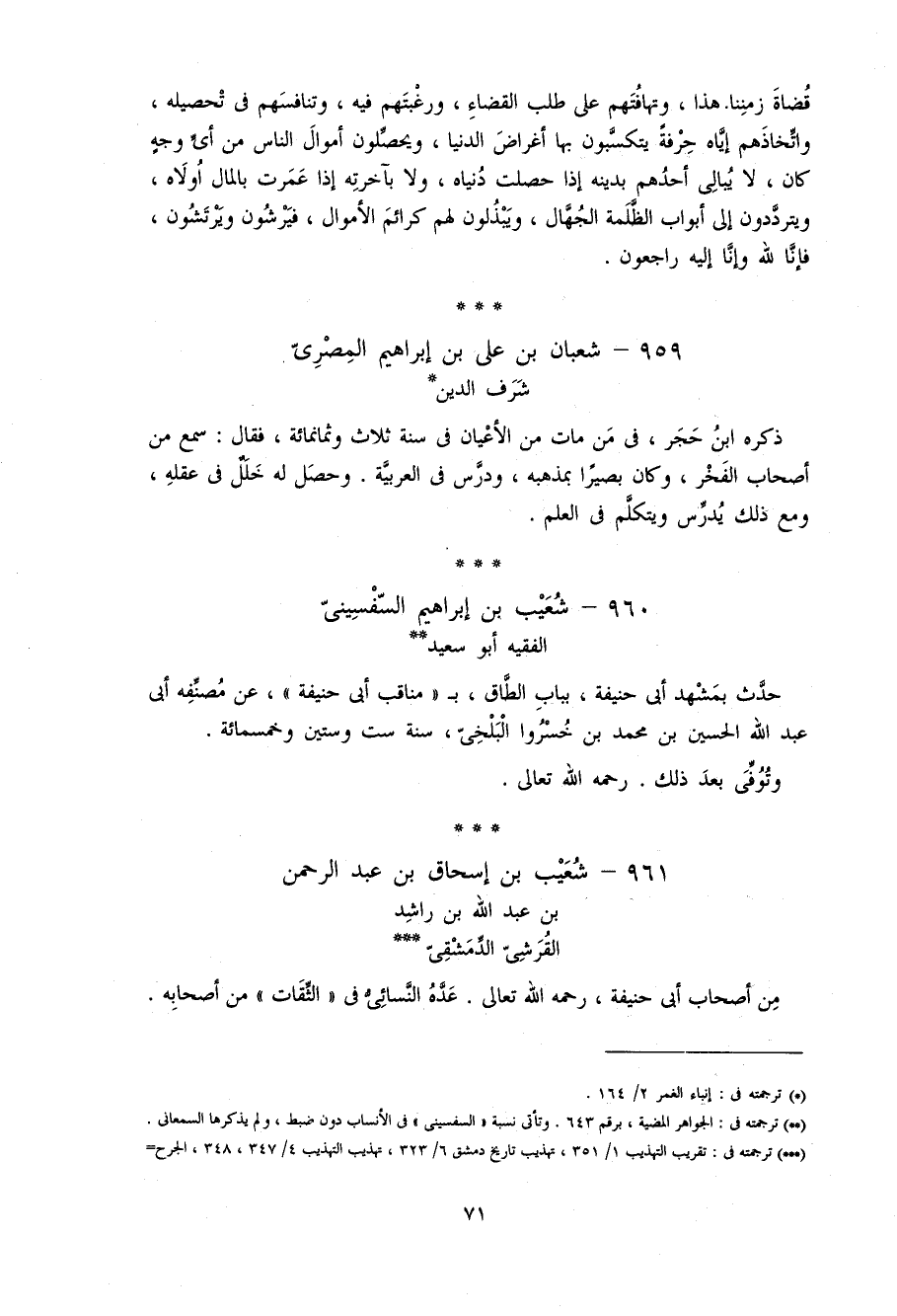 **) ترجمته فى: الجواهر المضية، برقم 643. و تأتى نسبة «السفسينى» فى الأنساب دون ضبط، و لم يذكرها السمعانى.