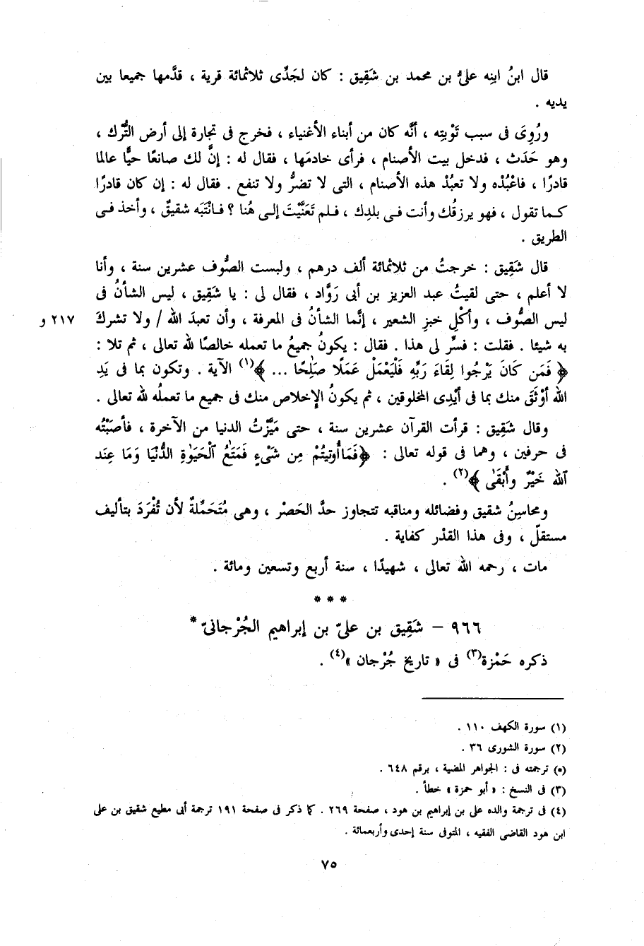 966 - شقيق بن علىّ بن إبراهيم الجرجانىّ *