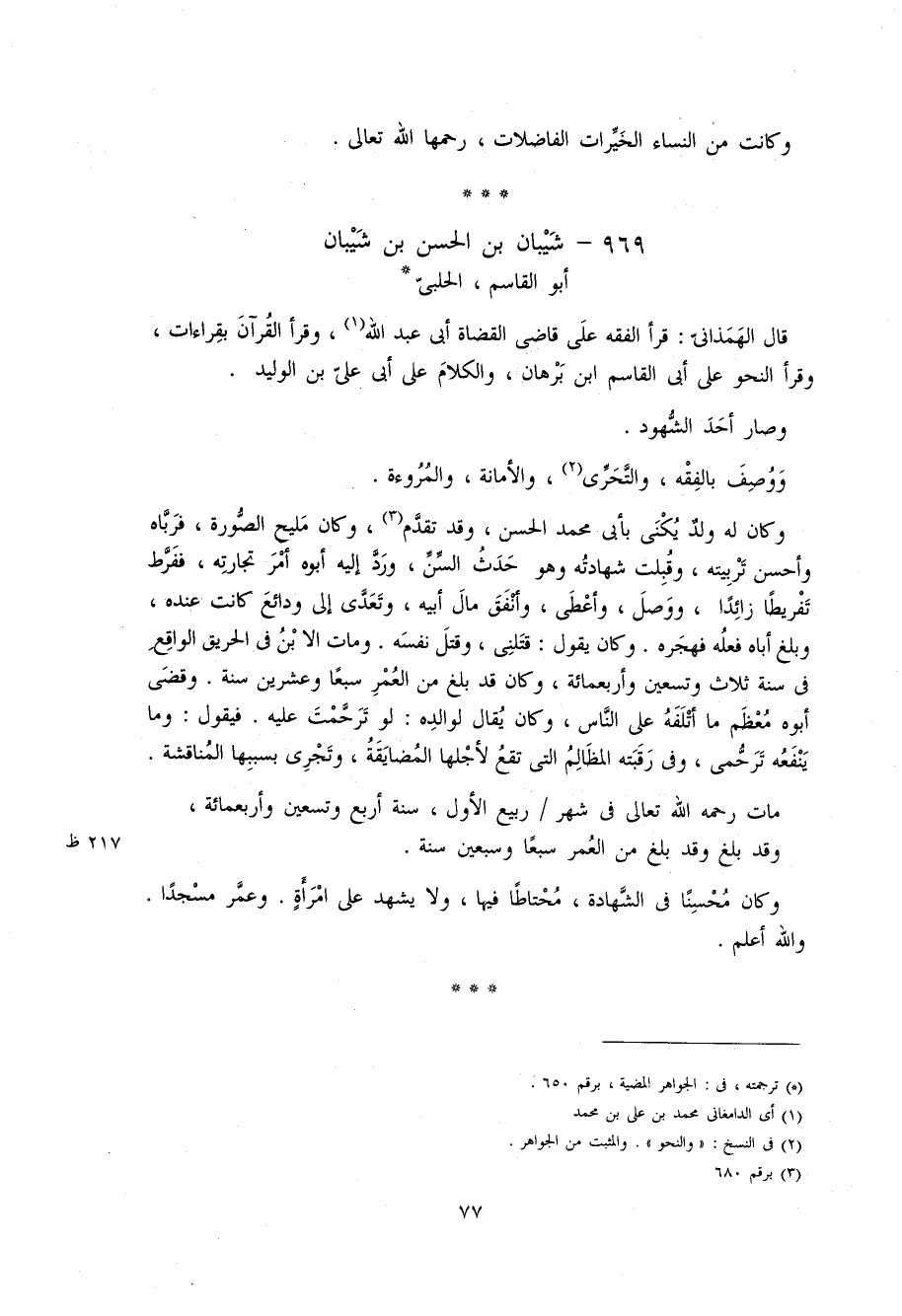 77 و كانت من النساء الخيّرات الفاضلات، رحمها اللّه تعالى.
