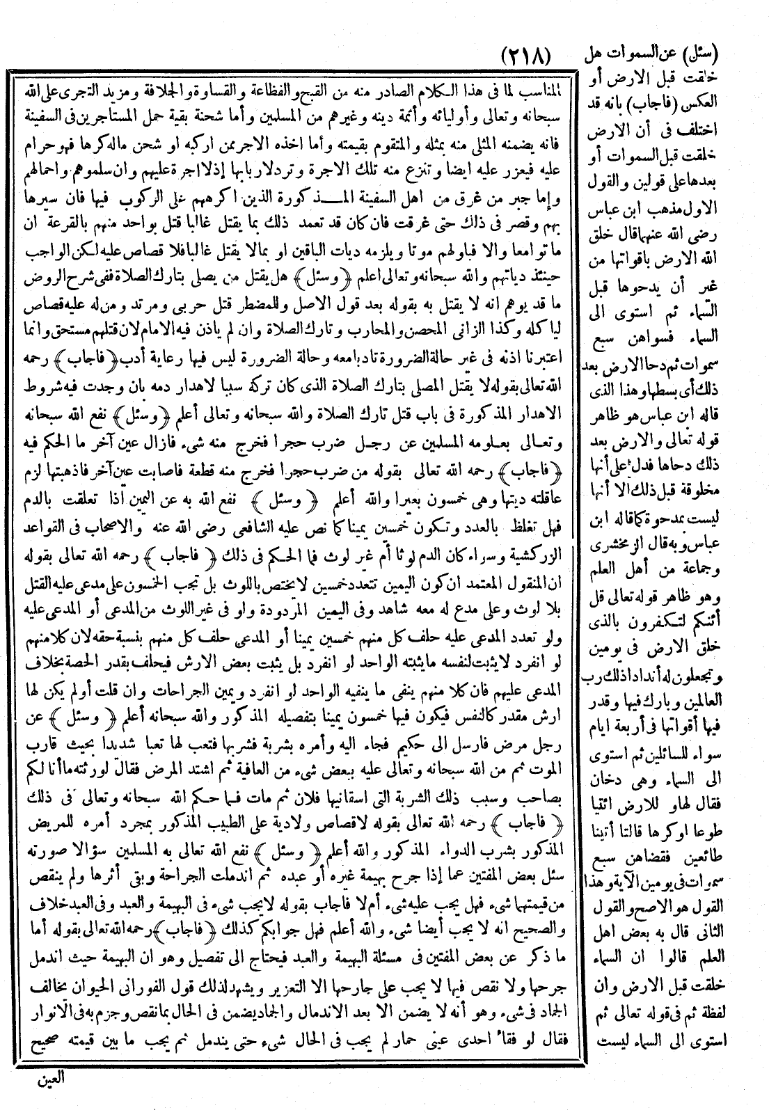 (فَأَجَابَ) - رَحِمَهُ اللَّهُ تَعَالَى - بِقَوْلِهِ أَمَّا مَا ذُكِرَ عَنْ بَعْضِ الْمُفْتِينَ فِي مَسْأَلَةِ الْبَهِيمَةِ وَالْعَبْدِ فَيَحْتَاجُ إلَى تَفْصِيلٍ وَهُوَ أَنَّ الْبَهِيمَةَ حَيْثُ انْدَمَلَ جُرْحُهَا وَلَا نَقْصَ فِيهَا لَا يَجِبُ عَلَى جَارِحِهَا إلَّا التَّعْزِيرُ وَيَشْهَدُ لِذَلِكَ قَوْلُ الْفُورَانِيِّ الْحَيَوَانُ يُخَالِفُ الْجَمَادَ فِي شَيْءٍ وَهُوَ أَنَّهُ لَا يُضْمَنُ إلَّا بَعْدَ الِانْدِمَالِ وَالْجَمَادُ يُضْمَنُ فِي الْحَالِ بِمَا نَقَصَ وَجَزَمَ بِهِ فِي الْأَنْوَارِ فَقَالَ لَوْ فَقَأَ إحْدَى عَيْنَيْ حِمَارٍ لَمْ يَجِبْ فِي الْحَالِ شَيْءٌ حَتَّى يَنْدَمِلَ ثُمَّ يَجِبُ مَا بَيْنَ قِيمَتِهِ صَحِيحَ