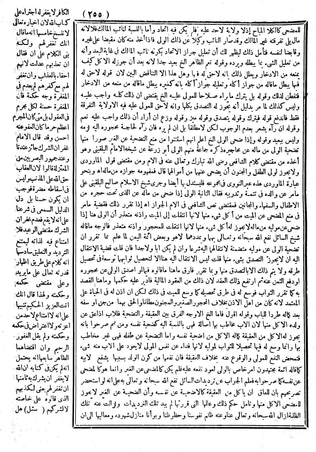 وَقَوْلُهُ وَزَّعَ إنْ أَرَادَ أَنَّ ذَلِكَ وَاجِبٌ عَلَيْهِ نَعَمْ وَقَوْلُهُ إنْ رَآهُ يُشْعِرُ بِعَدَمِ الْوُجُوبِ لَكِنْ لَا مُطْلَقًا بَلْ إنْ لَمْ يَرَهُ فَإِنْ رَآهُ لِحَاجَةِ مَحْجُورِهِ إلَيْهِ لَزِمَهُ وَلَيْسَ بِبَعِيدٍ وَقَوْلُهُ وَإِذَا ضَحَّى الْوَلِيُّ إلَخْ اعْلَمْ أَنَّهُمْ اسْتَثْنَوْا مِنْ مَنْعِ التَّضْحِيَةِ عَنْ الْغَيْرِ صُوَرًا مِنْهَا تَضْحِيَةُ الْوَلِيِّ مِنْ مَالِهِ عَنْ مَحَاجِيرِهِ ذَكَرَهُ جَمَاعَةٌ مِنْهُمْ الْوَلِيُّ أَبُو زُرْعَةَ عَنْ شَيْخِهِ الْإِمَامِ الْبُلْقِينِيُّ وَهُوَ أَخَذَهُ مِنْ مُقْتَضَى كَلَامِ الشَّافِعِيِّ - رَضِيَ اللَّهُ تَبَارَكَ وَتَعَالَى عَنْهُ - فِي الْأُمِّ وَمِنْ مُقْتَضَى قَوْلِ الْمَاوَرْدِيُّ وَلَا يَجُوزُ لِوَلِيِّ الطِّفْلِ وَالْمَجْنُونِ أَنْ يُضَحِّيَ عَنْهُمَا مِنْ أَمْوَالِهِمَا قَالَ فَمَفْهُومُهُ جَوَازُهُ مِنْ مَالِهِ. اهـ.