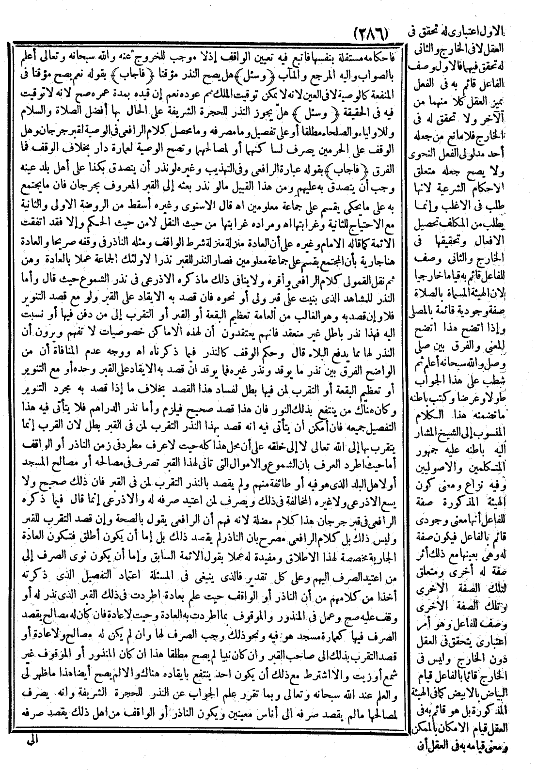 وَالْمَوْقُوفِ بِمَا اطَّرَدَتْ بِهِ الْعَادَةُ وَحَيْثُ لَا عَادَةَ فَإِنْ كَانَ لَهُ مَصَالِحُ يَقْصِدُ الصَّرْفَ فِيهَا كَعِمَارَةِ مَسْجِدٍ هُوَ فِيهِ وَنَحْوُ ذَلِكَ وَجَبَ الصَّرْفُ لَهَا وَإِنْ لَمْ يَكُنْ لَهُ مَصَالِحُ وَلَا عَادَةٌ أَوْ قَصَدَ التَّقَرُّبَ بِذَلِكَ إلَى صَاحِبِ الْقَبْرِ وَإِنْ كَانَ نَبِيًّا لَمْ يَصِحَّ مُطْلَقً. اهـ. ذَا إنْ كَانَ الْمَنْذُورُ أَوْ الْمَوْقُوفُ غَيْرَ شَمْعٍ أَوْ زَيْتٍ وَإِلَّا اُشْتُرِطَ مَعَ ذَلِكَ أَنْ يَكُونَ أَحَدٌ يَنْتَفِعُ بِإِيقَادِهِ هُنَاكَ وَإِلَّا لَمْ يَصِحَّ أَيْضًا هَذَا مَا ظَهَرَ لِي وَالْعِلْمُ عِنْدَ اللَّهِ سُبْحَانَهُ وَتَعَالَى وَبِمَا تَقَرَّرَ عُلِمَ الْجَوَابُ عَنْ النَّذْرِ لِلْحُجْرَةِ الشَّرِيفَةِ وَأَنَّهُ يُصْرَفُ لِمَصَالِحِهَا مَا لَمْ يُقْصَدْ صَرْفُهُ إلَى أُنَاسٍ مُعَيَّنِينَ وَيَكُونُ النَّاذِرُ أَوْ الْوَاقِفُ مِنْ أَهْلِ ذَلِكَ يَقْصِدُ صَرْفَهُ