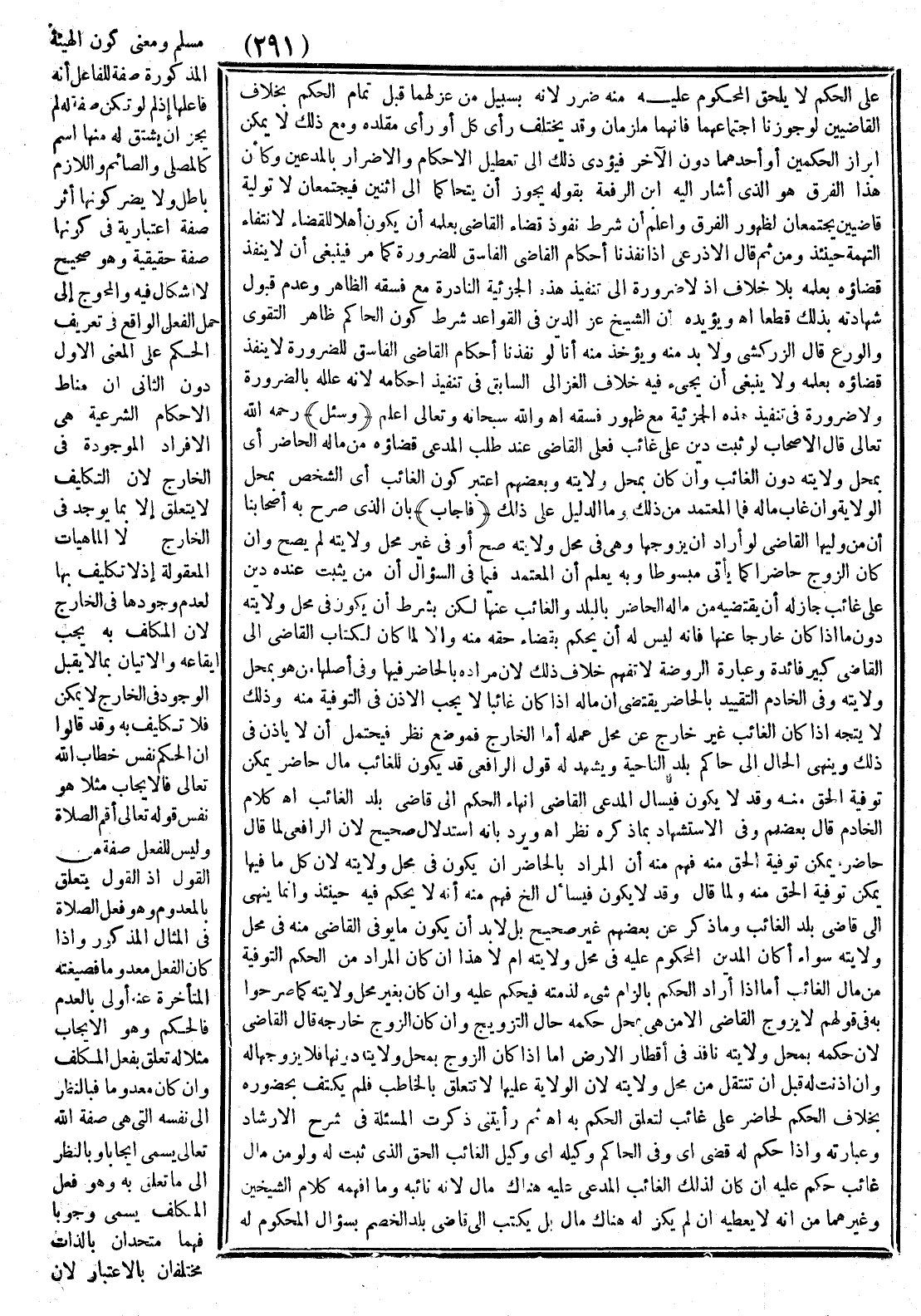 (فَأَجَابَ) بِأَنَّ الَّذِي صَرَّحَ بِهِ أَصْحَابُنَا أَنَّ مَنْ وَلِيُّهَا الْقَاضِي لَوْ أَرَادَ أَنْ يُزَوِّجَهَا وَهِيَ فِي مَحَلِّ وِلَايَتِهِ صَحَّ أَوْ فِي غَيْرِ مَحَلِّ وِلَايَتِهِ لَمْ يَصِحَّ وَإِنْ كَانَ الزَّوْجُ حَاضِرًا كَمَا يَأْتِي مَبْسُوطًا وَبِهِ يُعْلَمُ أَنَّ الْمُعْتَمَدَ فِيمَا فِي السُّؤَالِ أَنَّ مَنْ يَثْبُتُ عِنْدَهُ دَيْنٌ عَلَى غَائِبٍ جَازَ لَهُ أَنْ يَقْضِيَهُ مِنْ مَالِهِ الْحَاضِرِ بِالْبَلَدِ وَالْغَائِبِ عَنْهَا لَكِنْ يُشْرَطُ أَنْ يَكُونَ فِي مَحَلِّ وِلَايَتِهِ دُونَ مَا إذَا كَانَ خَارِجًا عَنْهَا فَإِنَّهُ لَيْسَ لَهُ أَنْ يَحْكُمَ بِقَضَاءِ حَقِّهِ مِنْهُ وَإِلَّا لَمَا كَانَ لِكِتَابِ الْقَاضِي إلَى الْقَاضِي كَبِيرُ فَائِدَةٍ وَعِبَارَةُ الرَّوْضَةِ لَا تُفْهِمُ خِلَافَ ذَلِكَ لِأَنَّ مُرَادَهُ بِالْحَاضِرِ فِيهَا وَفِي أَصْلِهَا مَنْ هُوَ بِمَحَلِّ وِلَايَتِهِ وَفِي الْخَادِمِ التَّقْيِيدُ بِالْحَاضِرِ يَقْتَضِي أَنَّ مَالَهُ إذَا كَانَ عَائِبًا لَا يَجِبُ الْإِذْنُ فِي التَّوْفِيَةِ مِنْهُ وَذَلِكَ لَا يَتَّجِهُ إذَا كَانَ الْغَائِبُ غَيْرَ خَارِجٍ عَنْ مَحَلِّ عَمَلِهِ.