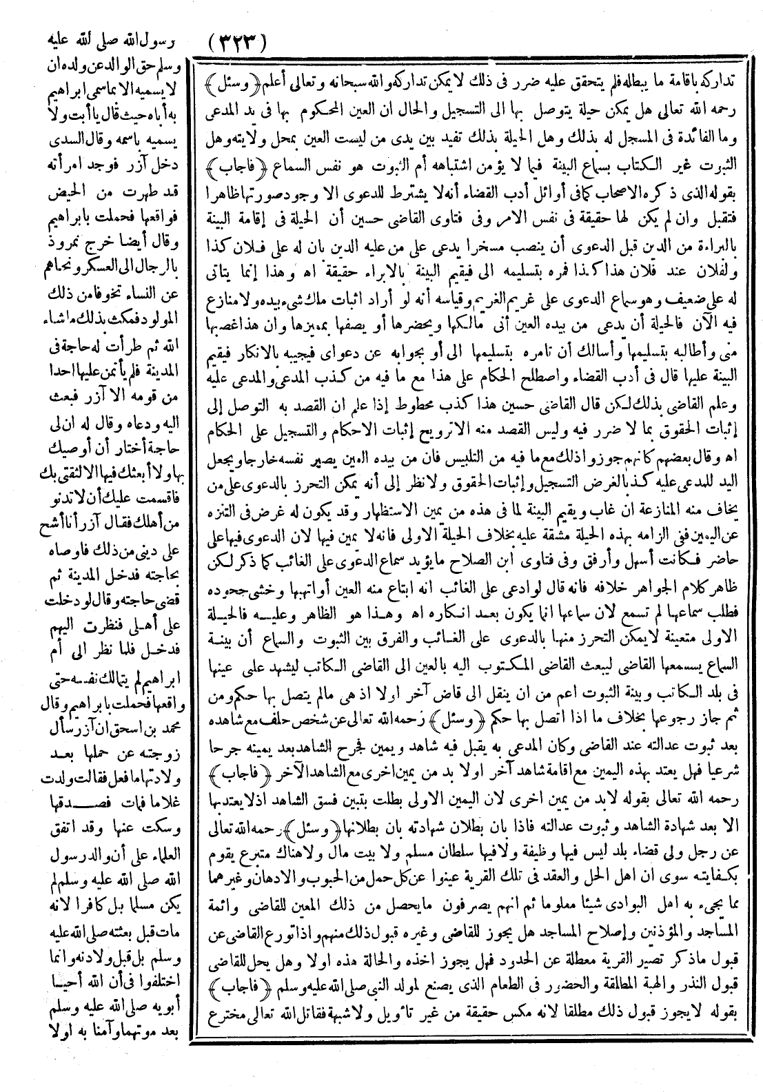 (فَأَجَابَ) بِقَوْلِهِ الَّذِي ذَكَرَهُ الْأَصْحَابُ كَمَا فِي أَوَائِلِ أَدَبِ الْقَضَاءِ أَنَّهُ لَا يُشْتَرَطُ لِلدَّعْوَى إلَّا وُجُودُ صُورَتِهَا ظَاهِرًا فَتُقْبَلُ وَإِنْ لَمْ يَكُنْ لَهَا حَقِيقَةٌ فِي نَفْسِ الْأَمْرِ وَفِي فَتَاوَى الْقَاضِي حُسَيْنٍ أَنَّ الْحِيلَةَ فِي إقَامَةِ الْبَيِّنَةِ بِالْبَرَاءَةِ مِنْ الدَّيْنِ قَبْلَ الدَّعْوَى أَنْ يَنْصِبَ مُسَخَّرًا يَدَّعِي عَلَى مَنْ عَلَيْهِ الدَّيْنُ بِأَنَّ لَهُ عَلَى فُلَانٍ كَذَا وَلِفُلَانٍ عِنْدَ فُلَانٍ هَذَا كَذَا فَمُرْهُ بِتَسْلِيمِهِ إلَيَّ فَيُقِيمُ الْبَيِّنَةَ بِالْإِبْرَاءِ حَقِيقَةً اهـ. وَهَذَا إنَّمَا يَتَأَتَّى لَهُ عَلَى ضَعِيفٍ وَهُوَ سَمَاعُ الدَّعْوَى عَلَى غَرِيمِ الْغَرِيمِ وَقِيَاسُهُ أَنَّهُ لَوْ أَرَادَ إثْبَاتَ مِلْكِ شَيْءٍ بِيَدِهِ وَلَا مُنَازِعَ فِيهِ الْآنَ فَالْحِيلَةُ أَنْ يَدَّعِيَ مَنْ بِيَدِهِ الْعَيْنُ أَنِّي مَالِكُهَا وَيُحْضِرَهَا أَوْ يَصِفَهَا بِمُمَيِّزِهَا وَأَنَّ هَذَا غَصَبَهَا مِنِّي وَأُطَالِبُهُ بِتَسْلِيمِهَا وَأَسْأَلُك أَنْ تَأْمُرَهُ بِتَسْلِيمِهَا إلَيَّ أَوْ بِجَوَابِهِ عَنْ دَعْوَايَ فَيُجِيبُهُ بِالْإِنْكَارِ فَيُقِيمُ الْبَيِّنَةَ عَلَيْهَا قَالَ فِي أَدَبِ الْقَضَاءِ وَاصْطَلَحَ الْحُكَّامُ عَلَى هَذَا مَعَ مَا فِيهِ مِنْ كَذِبِ الْمُدَّعِي وَالْمُدَّعَى عَلَيْهِ وَعِلْمِ الْقَاضِي بِذَلِكَ. لَكِنْ قَالَ الْقَاضِي حُسَيْنٌ هَذَا كَذِبٌ مَحْطُوطٌ إذَا عُلِمَ أَنَّ الْقَصْدَ بِهِ التَّوَصُّلُ إلَى إثْبَاتِ الْحُقُوقِ بِمَا لَا ضَرَرَ فِيهِ وَلَيْسَ الْقَصْدُ مِنْهُ إلَّا تَرْوِيجَ إثْبَاتِ الْأَحْكَامِ وَالتَّسْجِيلِ عَلَى الْحُكَّامِ. اهـ. وَقَالَ بَعْضُهُمْ كَأَنَّهُمْ جَوَّزُوا ذَلِكَ مَعَ مَا فِيهِ مِنْ التَّلْبِيسِ فَإِنَّ مَنْ بِيَدِهِ الْعَيْنُ يُصَيِّرُ نَفَسَهُ خَارِجًا وَيَجْعَلُ الْيَدَ لِلْمُدَّعَى عَلَيْهِ كَذِبًا لِغَرَضِ التَّسْجِيلِ وَإِثْبَاتِ الْحُقُوقِ وَلَا نَظَرَ إلَى أَنَّهُ يُمْكِنُ التَّحَرُّزُ بِالدَّعْوَى عَلَى مَنْ يَخَافُ مِنْهُ الْمُنَازَعَةَ إنْ غَابَ وَيُقِيمُ الْبَيِّنَةَ لِمَا فِي هَذِهِ مِنْ يَمِينِ الِاسْتِظْهَارِ وَقَدْ يَكُونُ لَهُ غَرَضٌ فِي التَّنَزُّهِ عَنْ الْيَمِينِ فَفِي إلْزَامِهِ بِهَذِهِ الْحِيلَةِ مَشَقَّةٌ عَلَيْهِ بِخِلَافِ الْحِيلَةِ الْأُولَى فَإِنَّهُ لَا يَمِينَ فِيهَا