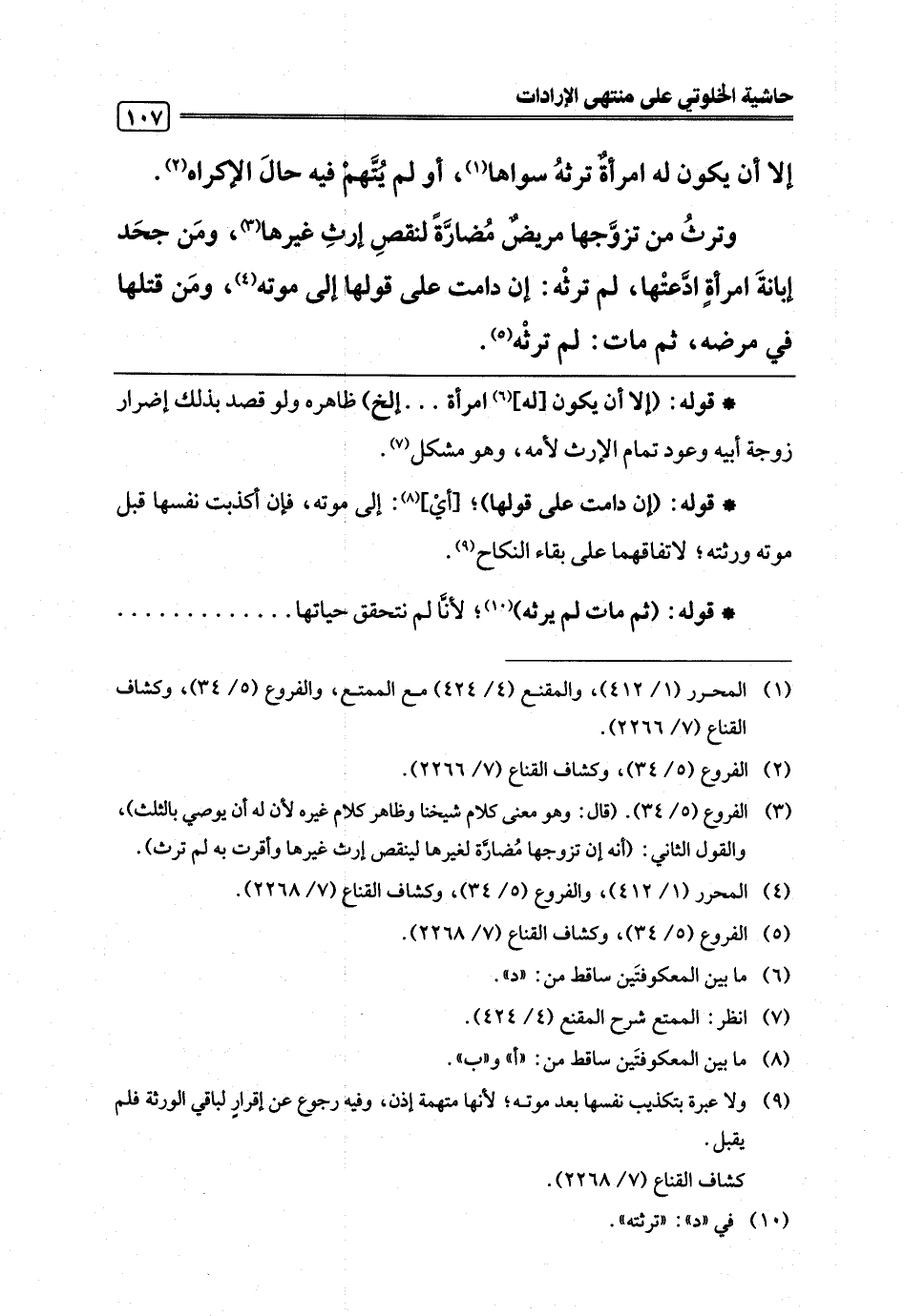 (¬3) الفروع (5/ 34). (قال: وهو معنى كلام شيخنا وظاهر كلام غيره لأن له أن يوصي بالثلث)، والقول الثاني: (أنه إن تزوجها مُضارَّة لغيرها لينقص إرث غيرها وأقرت به لم ترث).