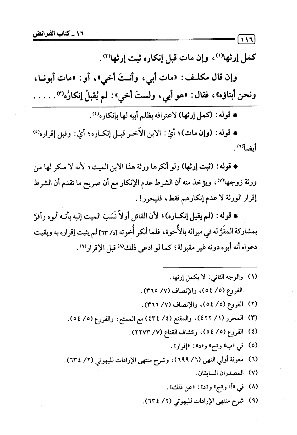 (¬6) معونة أولي النهى (6/ 699)، وشرح منتهى الإرادات للبهوتي (2/ 634).