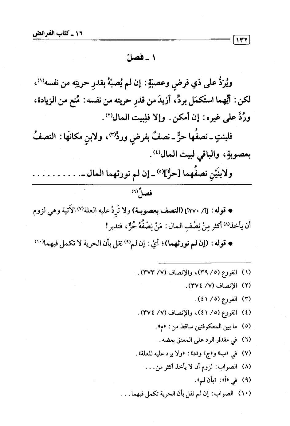 * قوله: (النصف بعصوبة) ولا تَرِدُ عليه العلة (¬7) الآتية وهي لزوم أن يأخذ (¬8) أكثر مِنْ نِصْفِ المال: مَنْ نِصْفُهُ حُرٌّ، فتدبر!