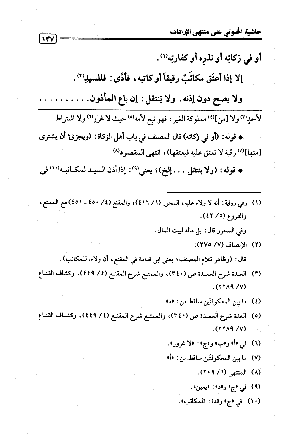 (¬5) العدة شرح العمدة ص (340)، والممتع شرح المقنع (4/ 449)، وكشاف القناع (7/ 2289).