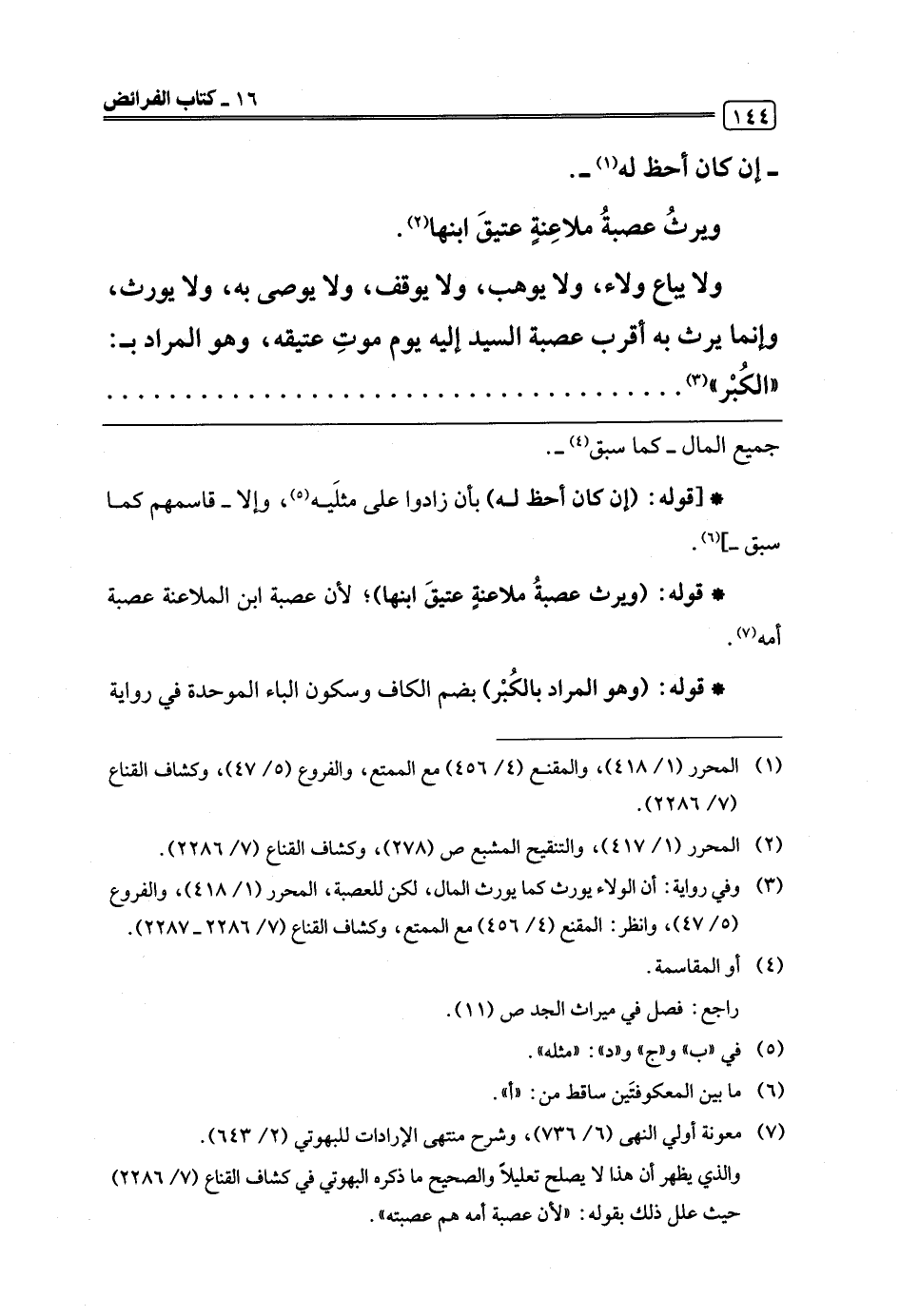 (¬7) معونة أولي النهى (6/ 736)، وشرح منتهى الإرادات للبهوتي (2/ 643).