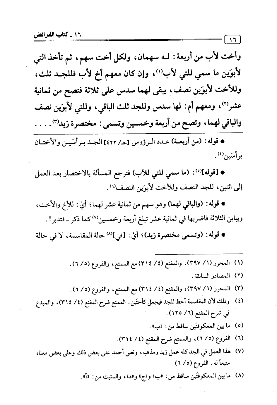 (¬7) هذا العمل في الجد كله عمل زيد ومذهبه، ونص أحمد على بعض ذلك وعلى بعض معناه متبعًا له. الفروع (5/ 6).