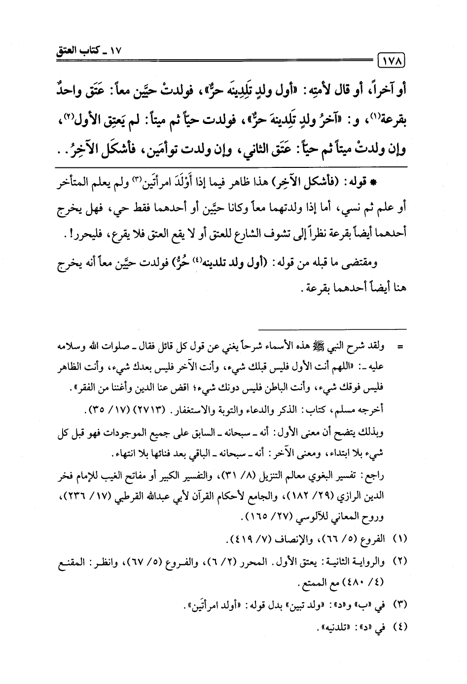 (¬2) والرواية الثانية: يعتق الأول. المحرر (2/ 6)، والفروع (5/ 67)، وانظر: المقنع (4/ 480) مع الممتع.