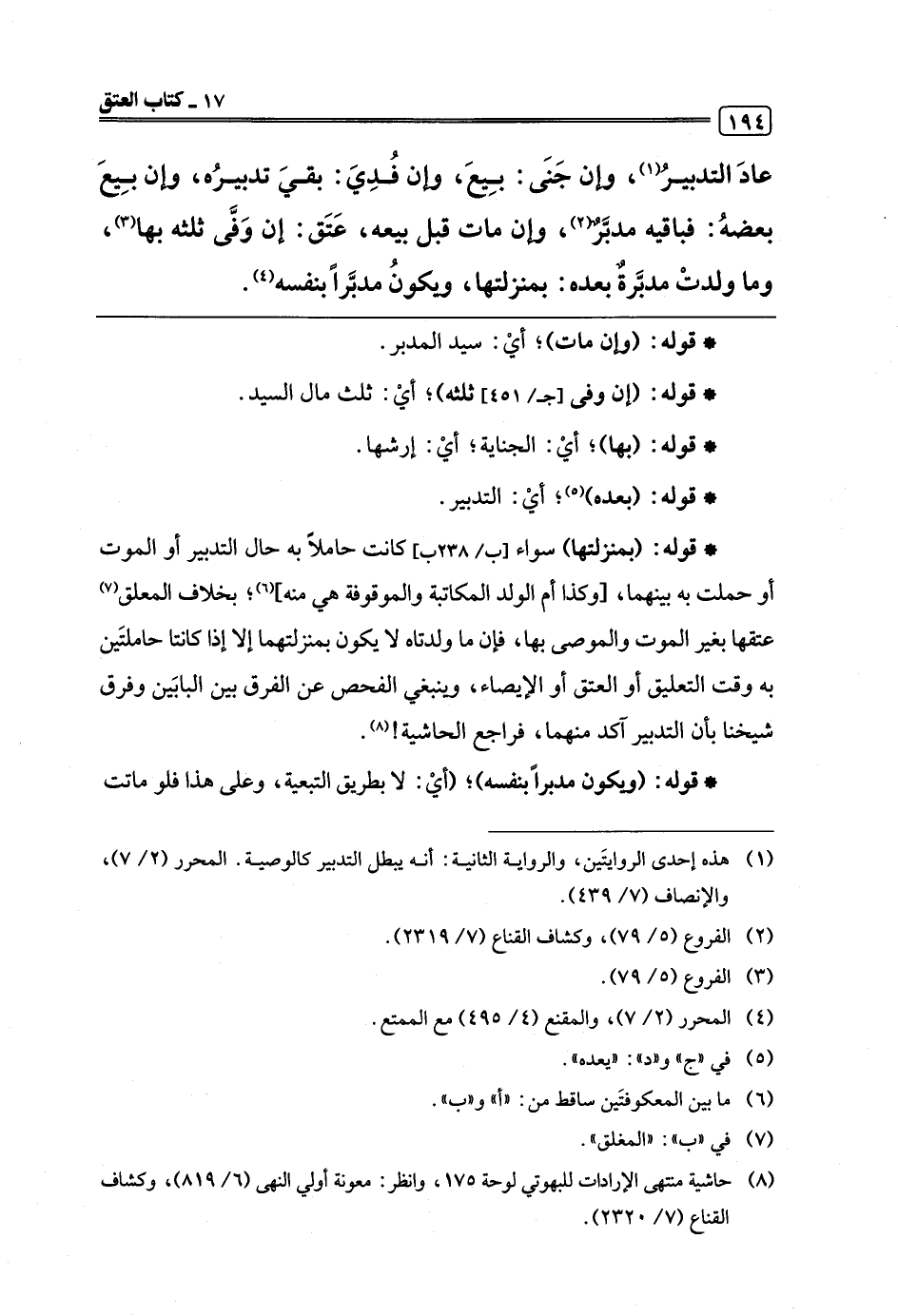 (¬8) حاشية منتهى الإرادات للبهوتي لوحة 175، وانظر: معونة أولي النهى (6/ 819)، وكشاف القناع (7/ 2320).