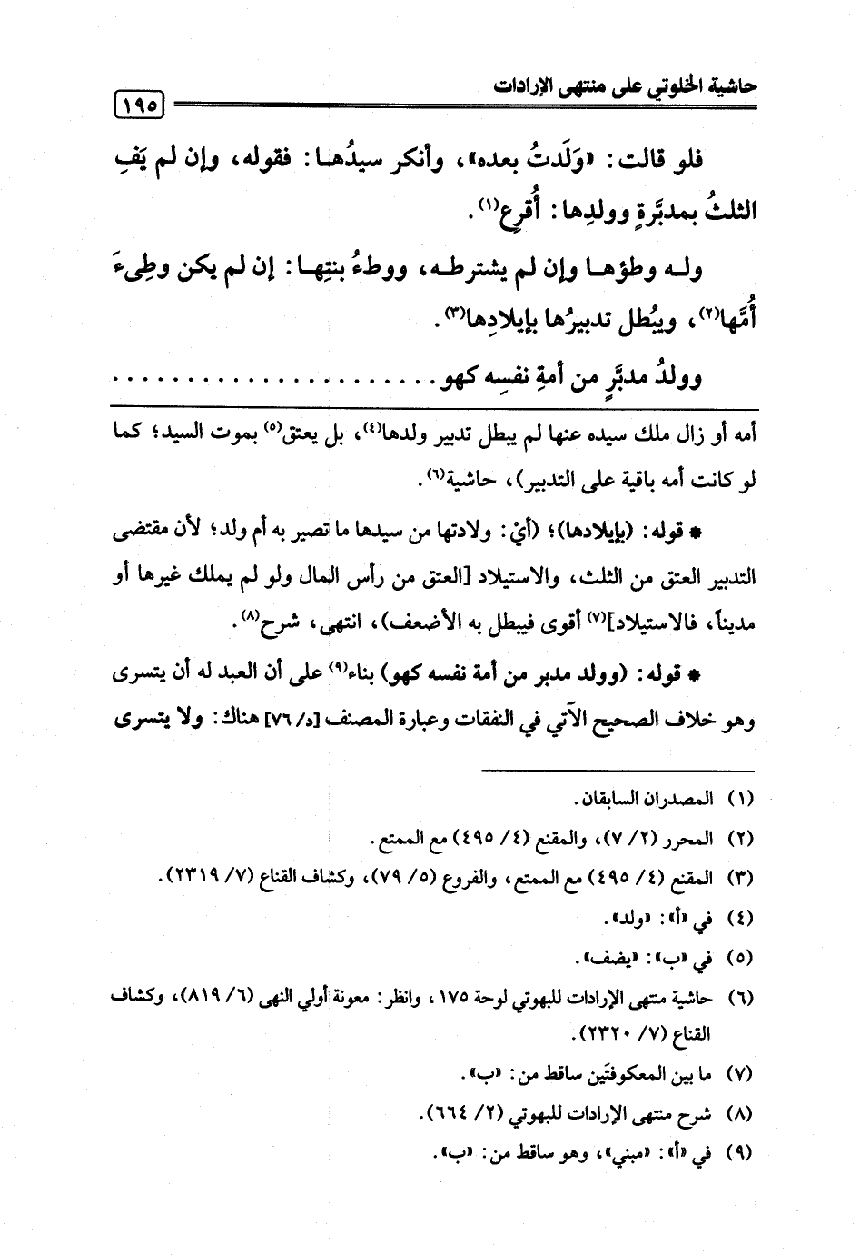 (¬6) حاشية منتهى الإرادات للبهوتي لوحة 175، وانظر: معونة أولي النهى (6/ 819)، وكشاف القناع (7/ 2320).