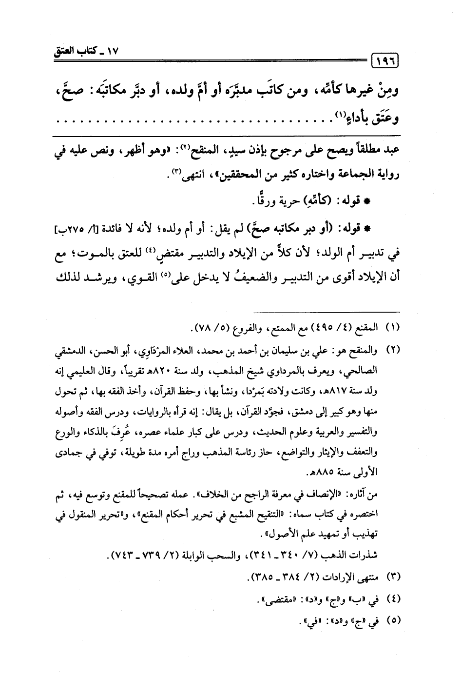 (¬2) والمنقح هو: علي بن سليمان بن أحمد بن محمد، العلاء المرْدَاوِي، أبو الحسن، الدمشقي الصالحي، ويعرف بالمرداوي شيخ المذهب، ولد سنة 820 هـ تقريبًا، وقال العليمي إنه ولد سنة 817 هـ، وكانت ولادته بَمرْدا، ونشأ بها، وحفظ القرآن، وأخذ الفقه بها، ثم تحول منها وهو كبير إلى دمشق، فجوَّد القرآن، بل يقال: إنه قرأه بالروايات، ودرس الفقه وأصوله والتفسير والعربية وعلوم الحديث، ودرس على كبار علماء عصره، عُرِفَ بالذكاء والورع والتعفف والإيثار والتواضع، حاز رئاسة المذهب وراج أمره مدة طويلة، توفي في جمادى الأولى سنة 885 هـ.
