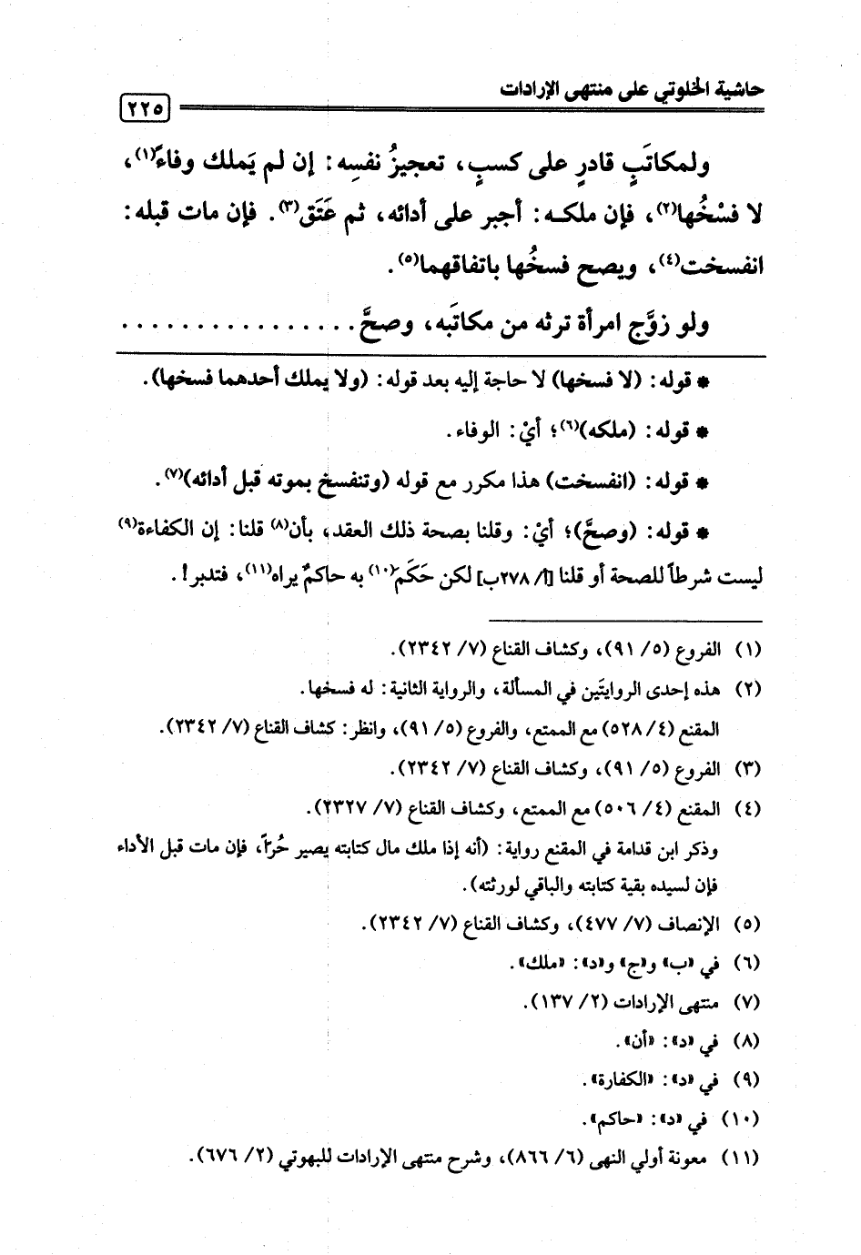 (¬11) معونة أولي النهى (6/ 866)، وشرح منتهى الإرادات للبهوتي (2/ 676).