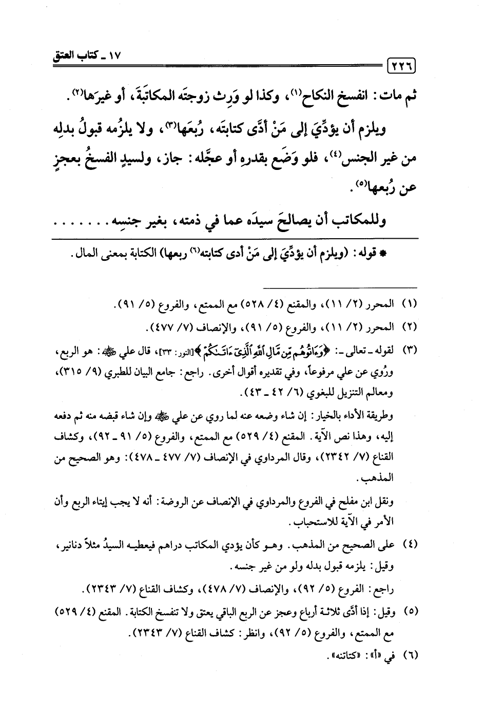 (¬3) لقوله -تعالى-: {وَآتُوهُمْ مِنْ مَالِ اللَّهِ الَّذِي آتَاكُمْ} [النور: 33]، قال علي -رضي اللَّه عنه-: هو الربع، ورُوي عن علي مرفوعًا، وفي تقديره أقوال أخرى. راجع: جامع البيان للطبري (9/ 315)، ومعالم التنزيل للبغوي (6/ 42 - 43).