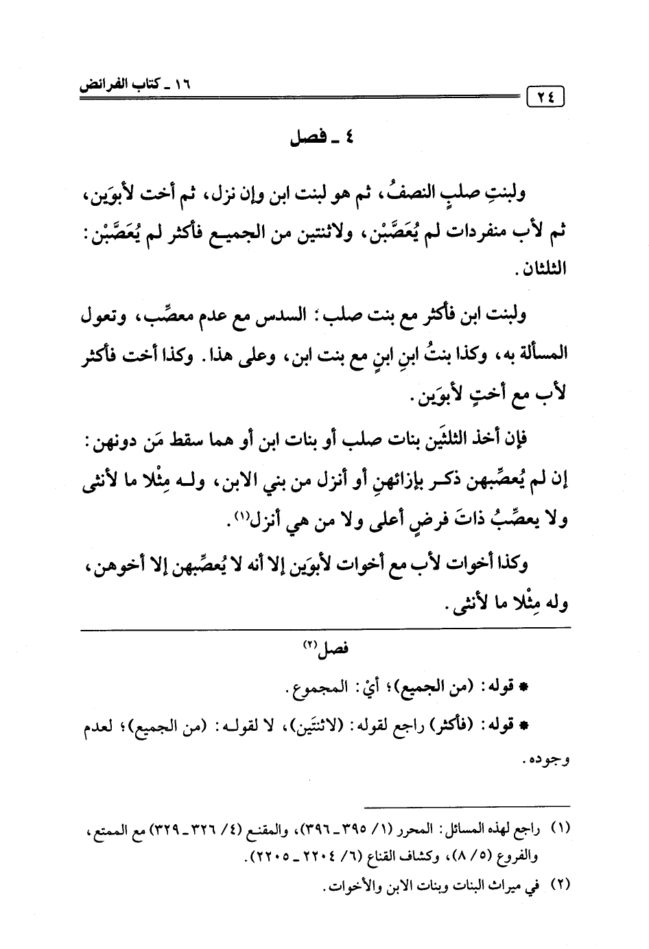 (¬1) راجع لهذه المسائل: المحرر (1/ 395 - 396)، والمقنع (4/ 326 - 329) مع الممتع، والفروع (5/ 8)، وكشاف القناع (6/ 2204 - 2205).