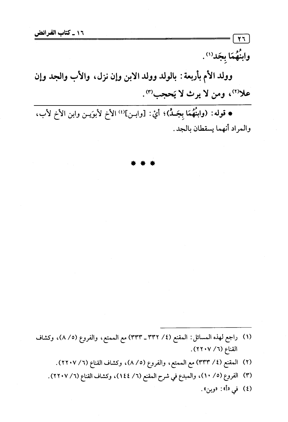 (¬1) راجع لهذه المسائل: المقنع (4/ 332 - 333) مع الممتع، والفروع (5/ 8)، وكشاف القناع (6/ 2207).