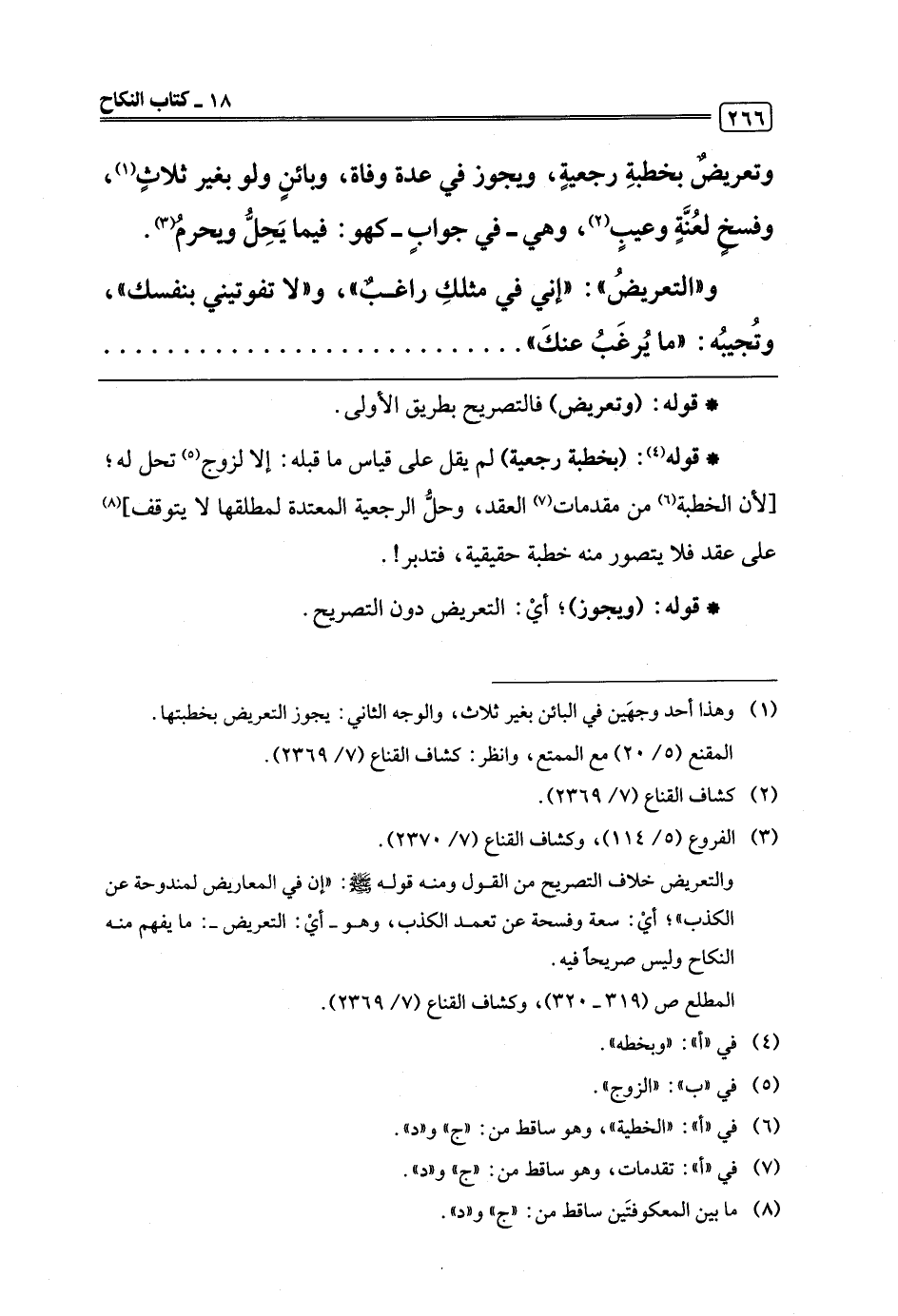 و"التعريضُ": "إني في مثلكِ راغبٌ"، و"لا تفوتيني بنفسك"، وتُجيبُه: "ما يُرغَبُ عنكَ". . . . . .