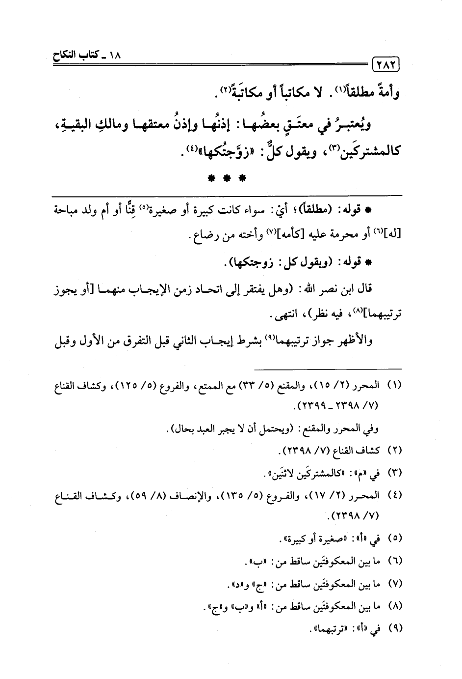 (¬1) المحرر (2/ 15)، والمقنع (5/ 33) مع الممتع، والفروع (5/ 125)، وكشاف القناع (7/ 2398 - 2399).