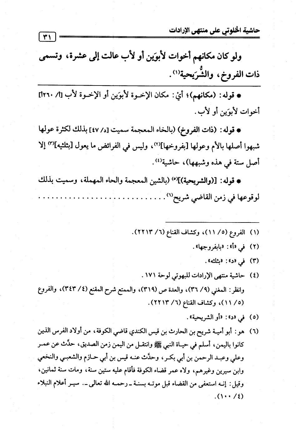 * قوله: [(والشريحية)] (¬5) (بالشين المعجمة والحاء المهملة، وسميت بذلك لوقوعها في زمن القاضي شريح (¬6). . . . . .