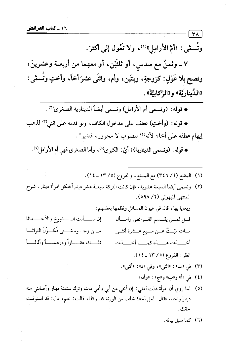 * قوله: (وتسمى أم الأرامل) وتسمى أيضًا الدينارية الصغرى (¬2).