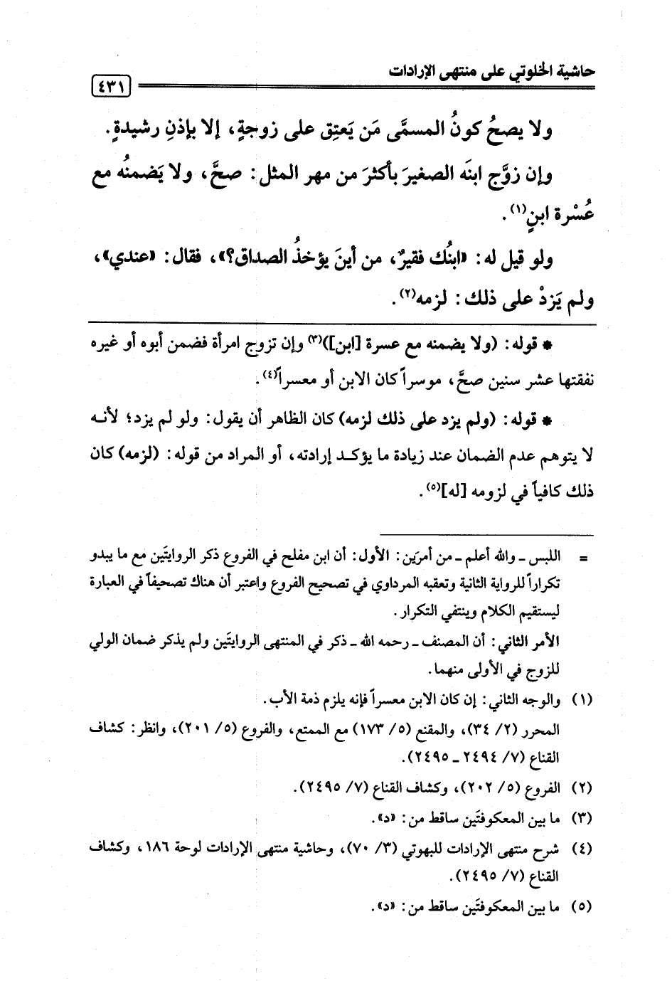 (¬4) شرح منتهى الإرادات للبهوتي (3/ 75)، وحاشية منتهى لإرادات لوحة 186، وكشاف القناع (7/ 2495).