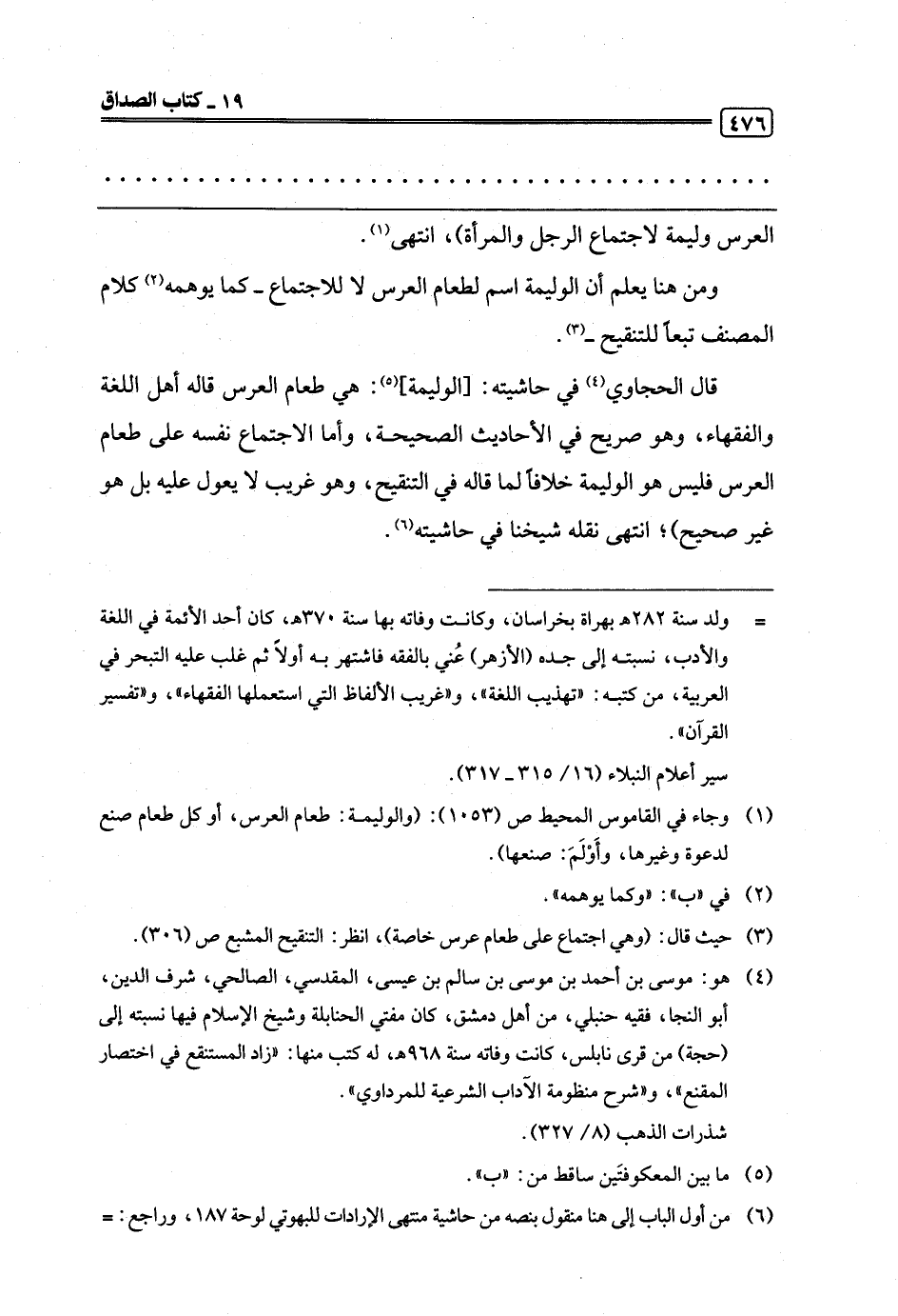 (¬4) هو: موسى بن أحمد بن موسى بن سالم بن عيسى، المقدسي، الصالحي، شرف الدين، أبو النجا، فقيه حنبلي، من أهل دمشق، كان مفتي الحنابلة وشيخ الإسلام فيها نسبته إلى (حجة) من قرى نابلس، كانت وفاته سنة 968 هـ، له كتب منها: "زاد المستنقع في اختصار المقنع"، و"شرح منظومة الآداب الشرعية للمرداوي".