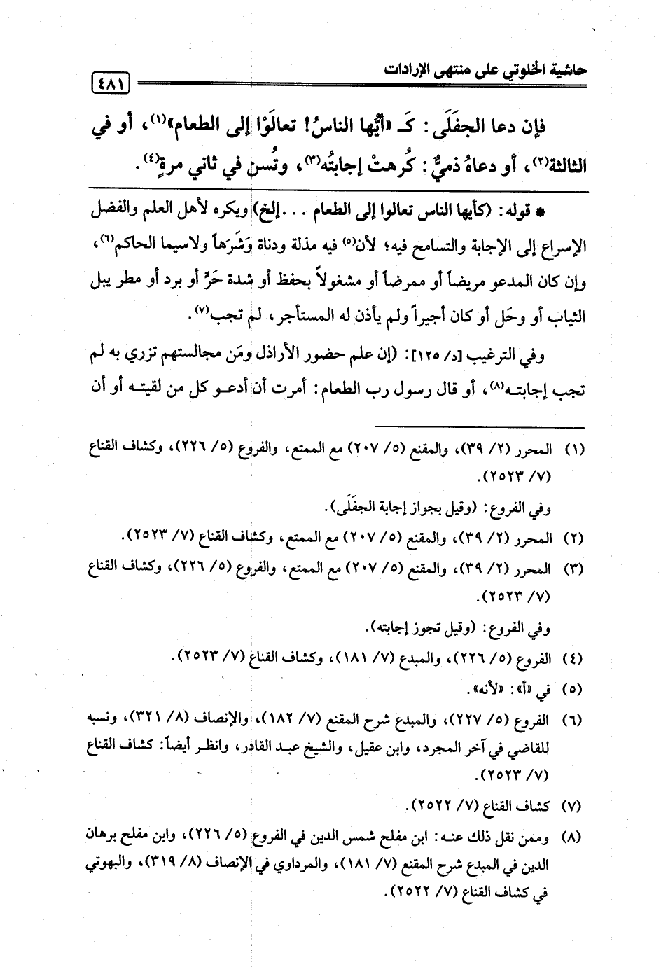 فإن دعا الجفَلَى: كَـ "أيُّها الناسُ! تعالَوْا إلى الطعام" (¬1)، أو في الثالثة (¬2)، أو دعاهُ ذميٌّ: كُرهتْ إجابتُه (¬3)، وتُسن في ثاني مرةٍ (¬4).