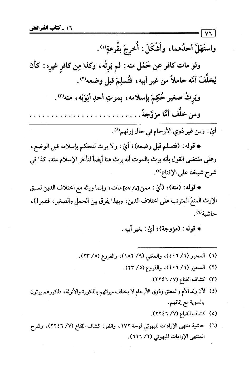 (¬6) حاشية منتهى الإرادات للبهوتي لوحة 172، وانظر: كشاف القناع (7/ 2246)، وشرح المنتهى الارادات للبهوتي (2/ 616).