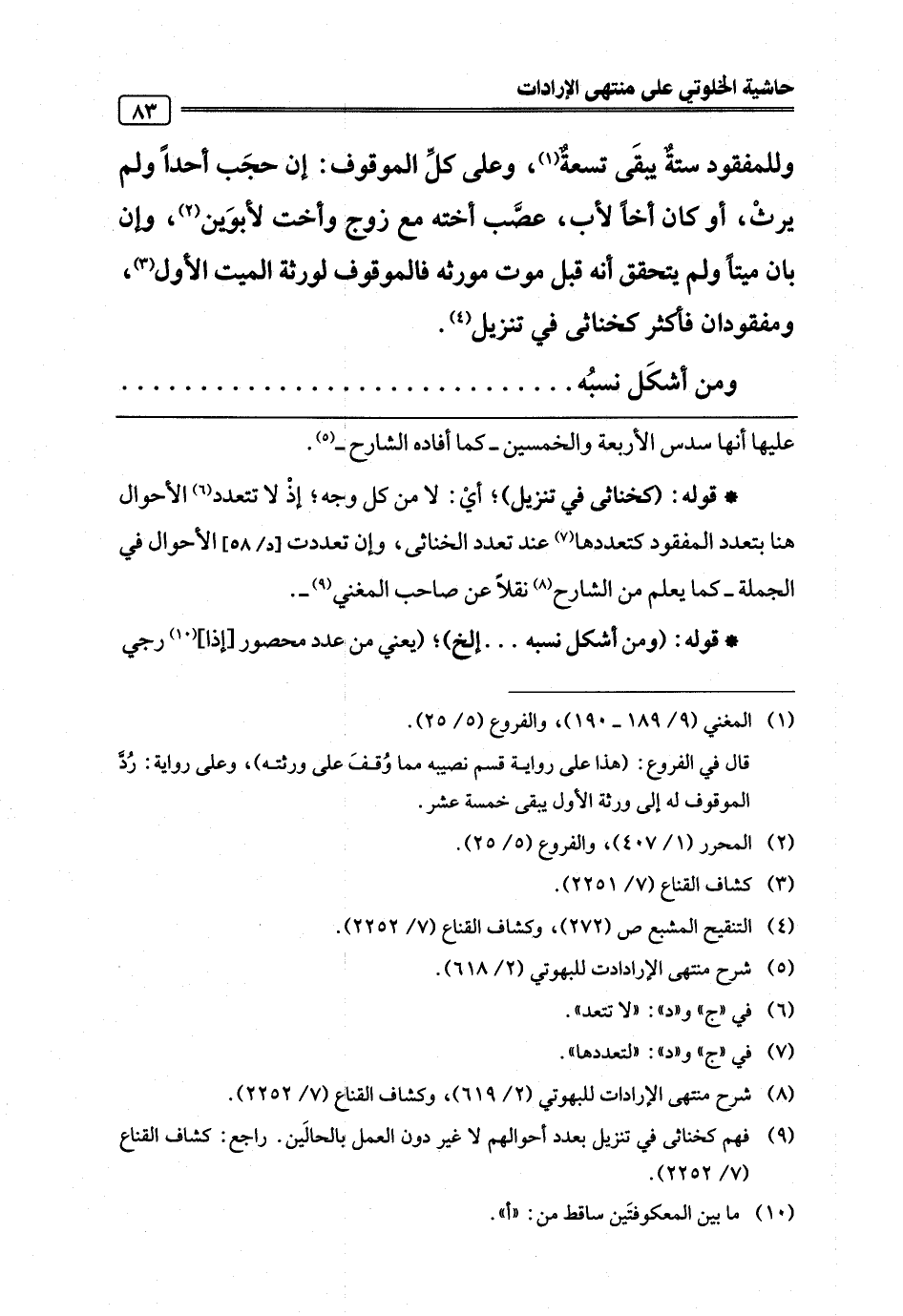 (¬8) شرح منتهى الإرادات للبهوتي (2/ 619)، وكشاف القناع (7/ 2252).