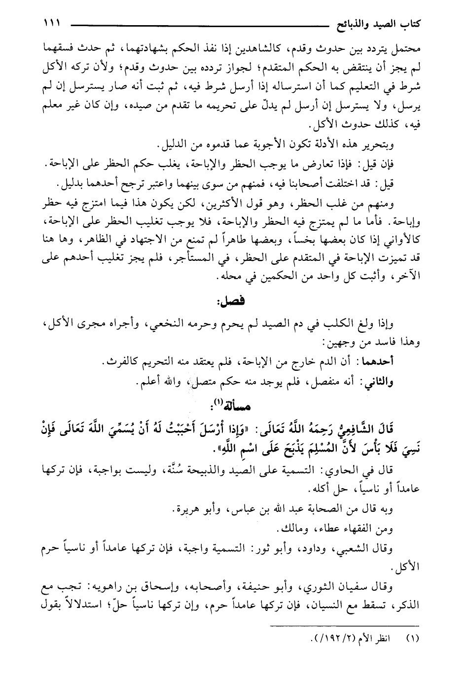 قالُ الشّافِعيِ رحمهُ اللهُ تعالى:" وذا أرِسل أحببتُ لهُ أن يُسمّيَ اللهُ تعالى فإنّ نسيّ فلا بأس لان المُسلِمُ يُذبِّحُ على اِسمِ الله ".