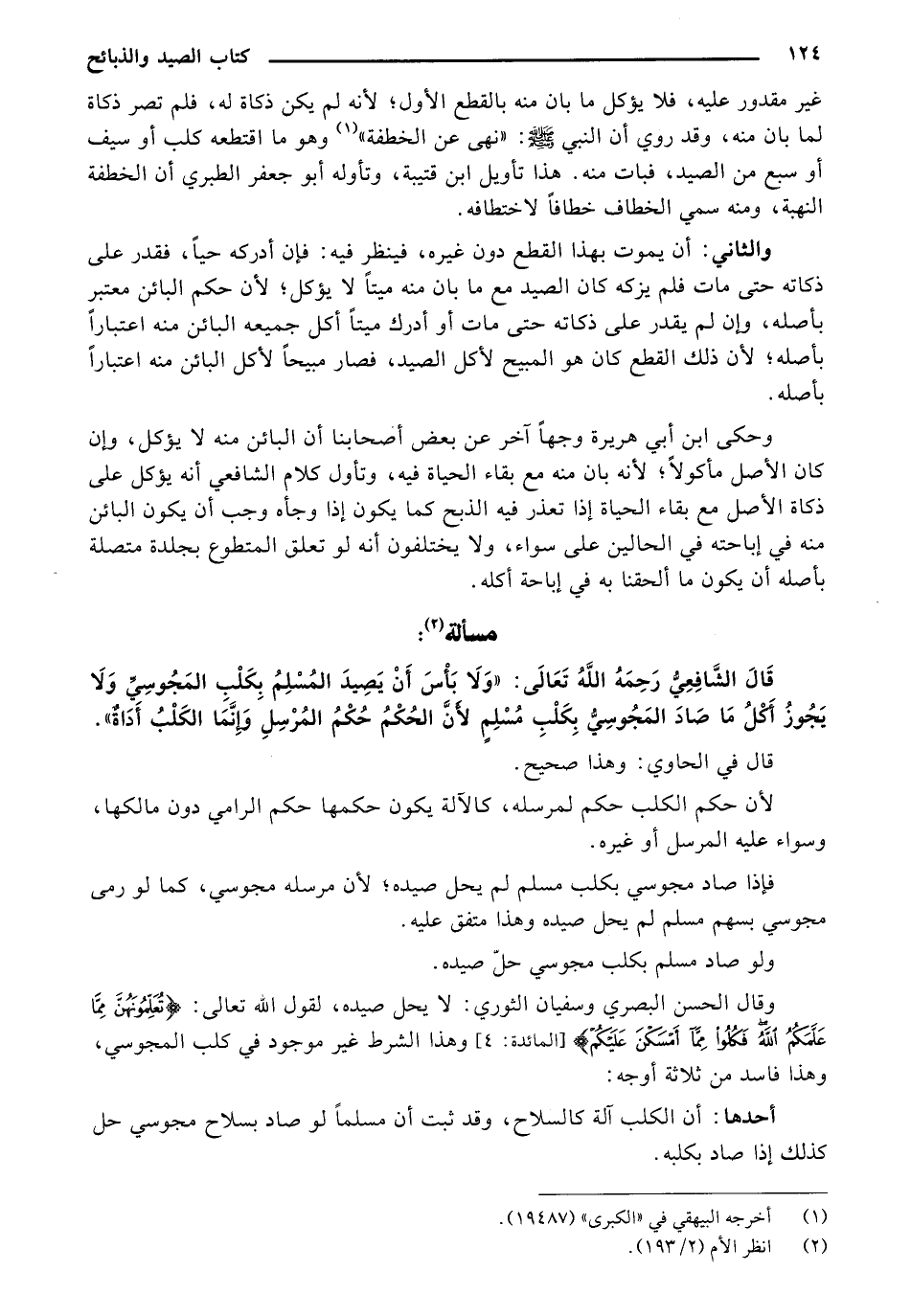 قالُ الشّافِعيِ رحمهُ اللهُ تعالى:" ولا بأس أن يصيد المُسلِمُ بِكلِبِ المجوسيِّ ولا يجوزُ أكُلّ ما صادُّ المجوسيِّ بِكلِبِ مُسلِمِ لأن الحُكم حُكم المُرسِلِ وإنّما الكلب أَدَاةٌ".