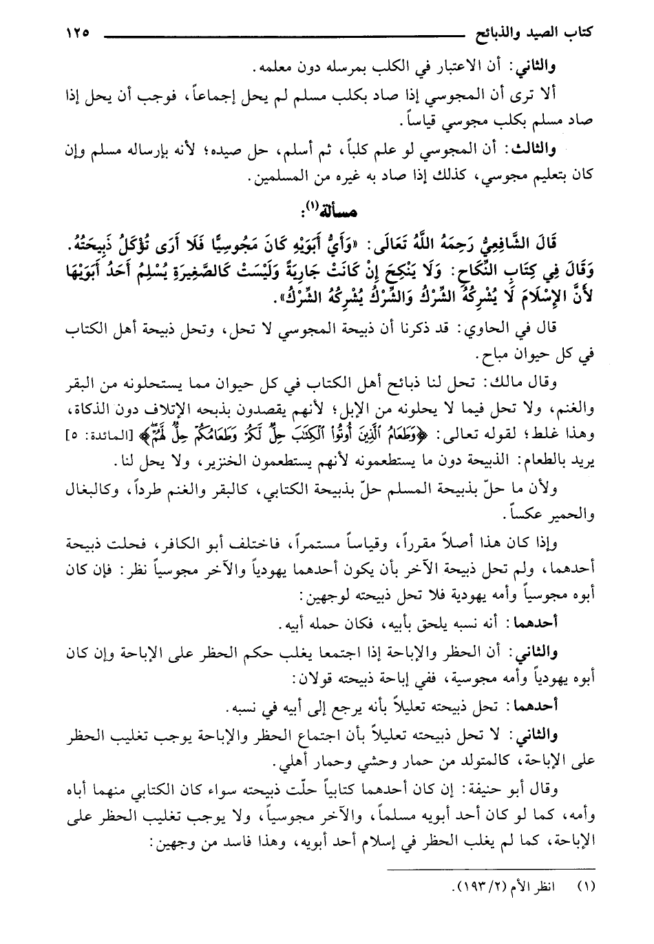 قال في الحاوي: قد ذكرنا أن ذبيحة المجوسي لا تحل، وتحل ذبيحة أهل الكتاب في كل حيوان مباح.