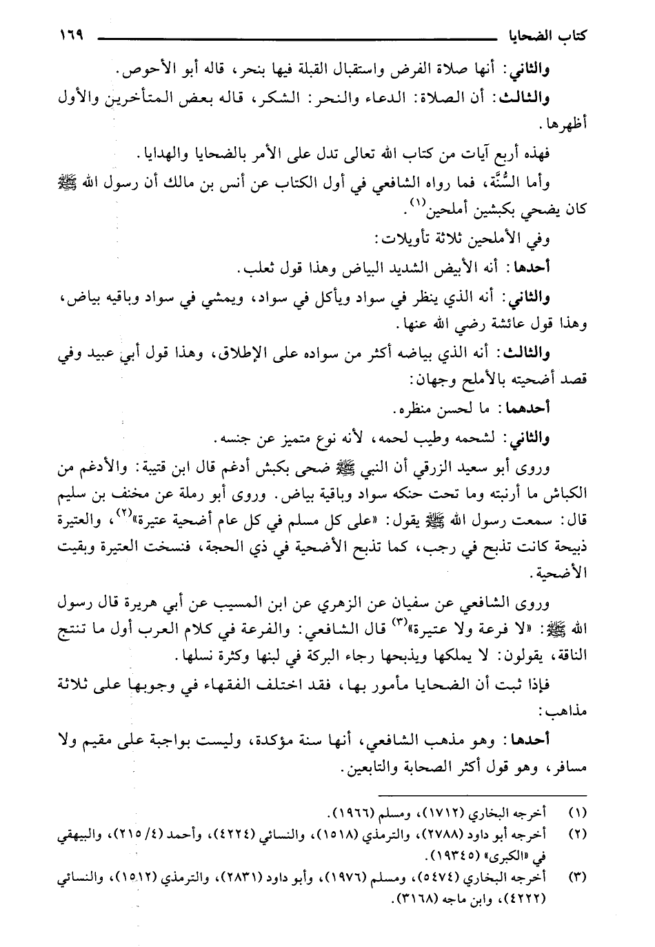 وأما السنة، فما رواه الشافعي في أول الكتاب عن أنس بن مالك أن رسول الله - صلى الله عليه وسلم - كان يضحي بكبشين أملحين.