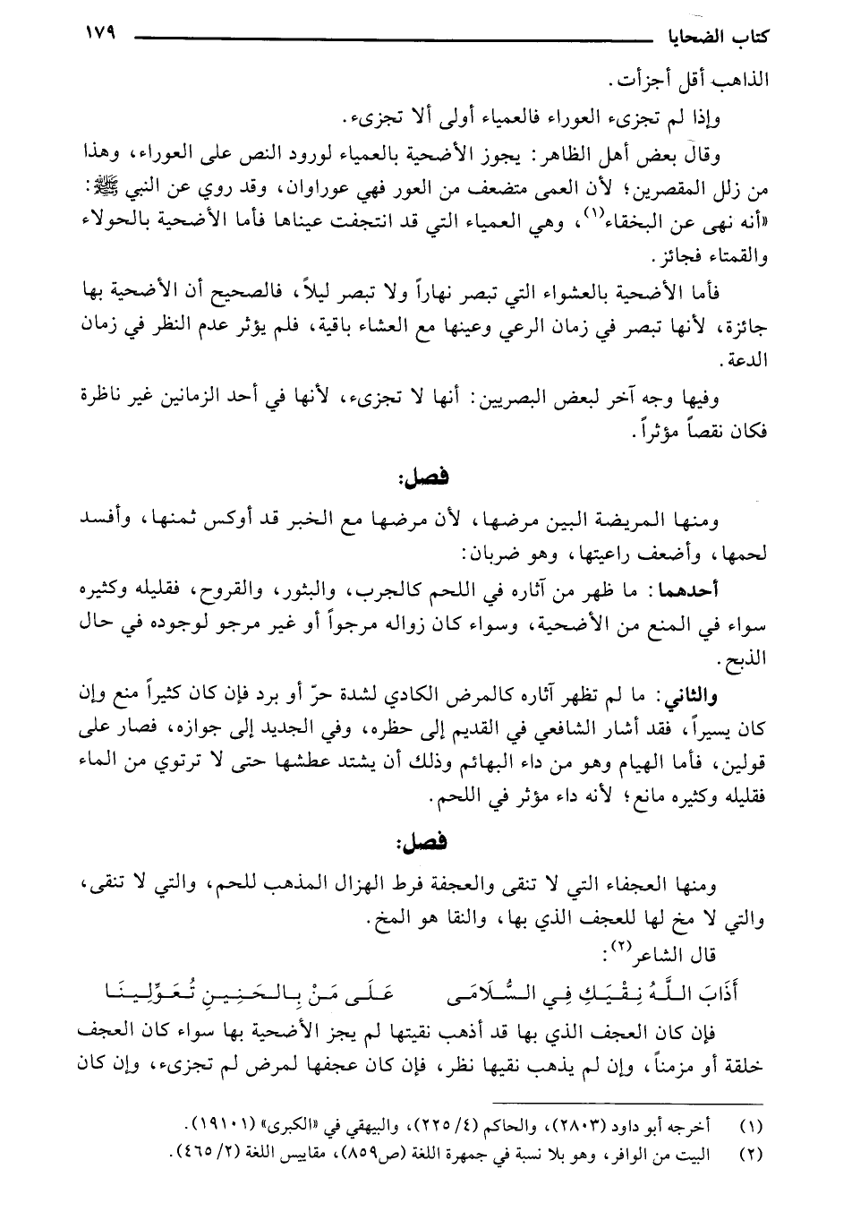 ومنها العجفاء التي لا تنقى والعجفة فرط الهزال المذهب للحم، والتي لا تنقى، والتي لا مخ لها للعجف الذي بها، والنقا هو المخ.