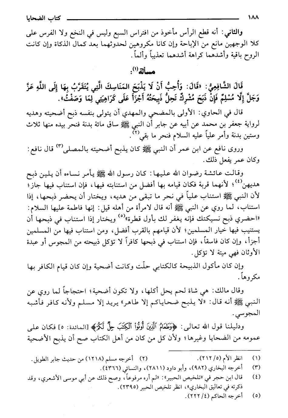 قَالُ الشَّافِعِيِ:" قَالُ: وَأُحِبُّ أَنْ لَا يُذَبِّحُ الْمَنَاسِكُ الَّتِي يَتَقَرَّبُ بِهَا إِلَى اللهِ عِزِّ وَجَلِ إلّا مُسَلَّمَ فان ذِبْحَ مشرك تَحِلُ ذِبْحَتُهُ أَجْزَأُ عَلَى كَرَاهِيَّتِي لَمَّا وَصَفَتْ".