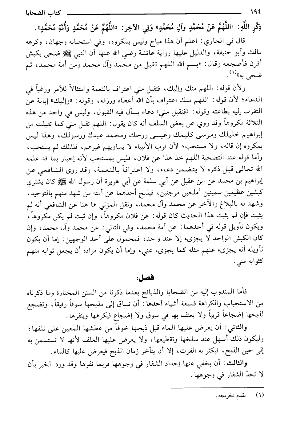 ولأن قوله: اللهم منك وإليك، فتقبل مني اعتراف بالنعمة وامتثالاً للأمر ورغباً في الدعاء؛ لأن قوله: اللهم منك اعتراف بأن الله أعطاه ورزقه، وقوله: "وإليك" إبانة عن التقرب إليه بطاعته وقوله: "فتقبل مني" دعاء يسأل فيه القبول، وليس في واحد من هذه الثلاثة مكروهاً وقد روي عن بعض السلف أنه كان يقول: اللهم تقبل مني كما تقبلت من إبراهيم خليلك وموسى كليمك وعيسى روحك ومحمد عبدك ورسولك، وهذا ليس بمكروه إن قاله، ولا مستحب؛ لأن قرب الأنبياء لا يساويهم غيرهم، فلذلك لم يستحب، وأما قوله عند التضحية اللهم خذ هذا عن فلان، فليس بمستحب لأنه إخبار بما قد علمه الله تعالى قبل ذكره لا يتضمن دعاء، ولا اعترافاً بالنعمة، وقد روي الشافعي عن إبراهيم بن محمد عن ابن عقيل عن أبي سلمة عن أبي هريرة أن رسول الله - صلى الله عليه وسلم - كان يشتري كبشين عظيمين سمينين أملحين موجئين، فيذبح أحدهما عن أمته من شهد منهم بالتوحيد، وشهد له بالبلاغ والأخر عن محمد وآل محمد، ونقل المزني ها هنا عن الشافعي أنه لم يثبت فإن لم يثبت هذا الحديث كان قوله: عن فلان مكروهاً، وإن ثبت لم يكن مكروهاً، ويكون تأويل قوله في أحدهما: عن أمة محمد، وفي الثاني: عن محمد وآل محمد، وإن كان الكبش الواحد لا بجزيء إلا عند واحد، فمحمول على أحد الوجهين: إما أن يكون تأويله أنه بجزيء عنهم مثله كما بجزيء عني، وإما أن يكون مراده أن يجعل ثوابه منهم كثوابه مني.