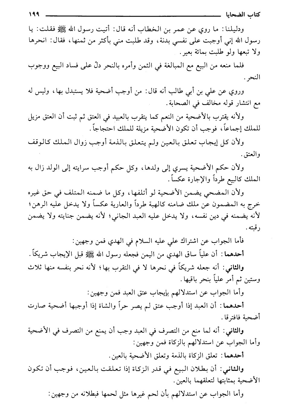 والثاني: أنه لما منع من التصرف في العبد وجب أن يمع من التصرف في الأضحية وأما الجواب عن استدلالهم بالزكاة فمن وجهين: