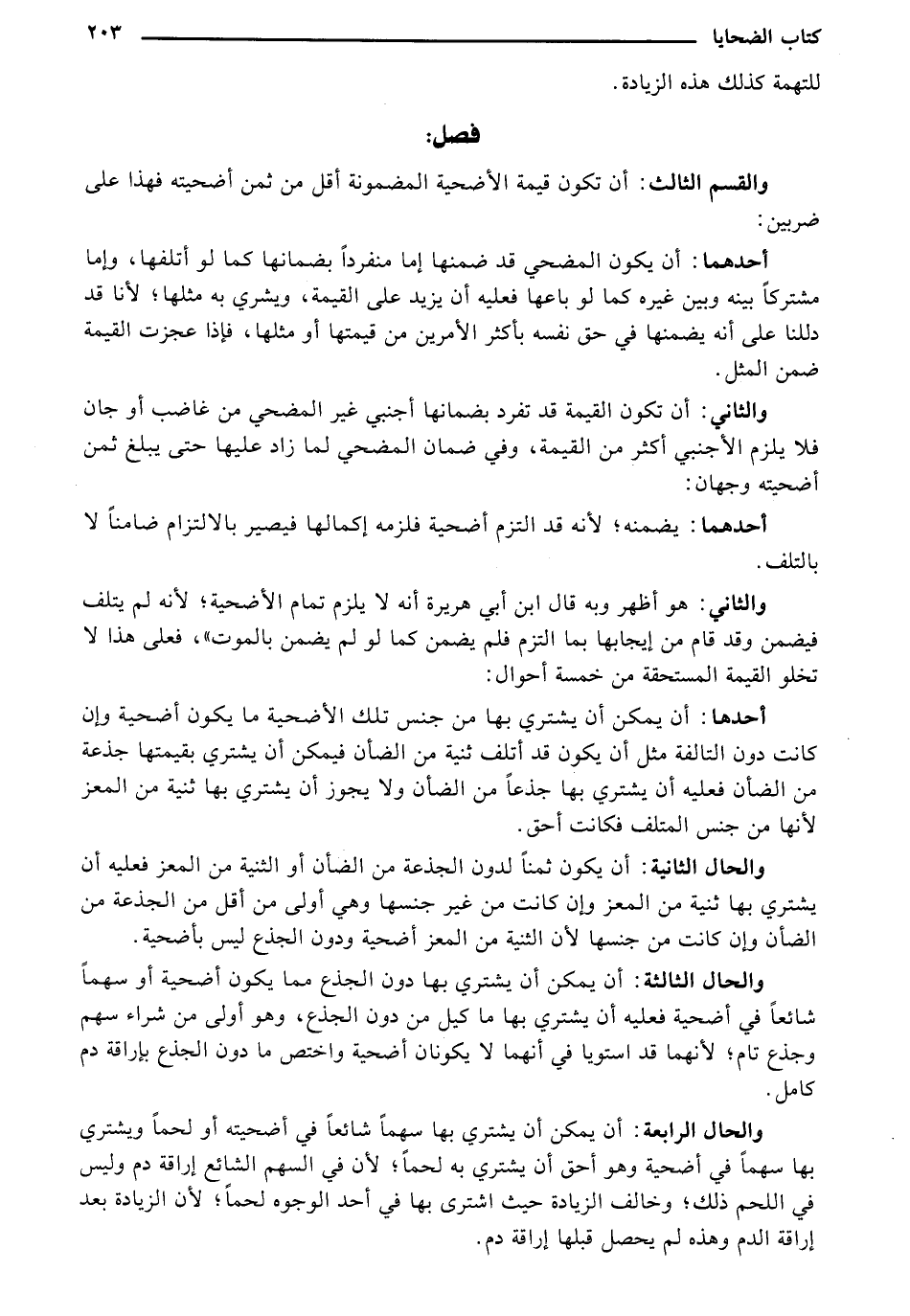 والحال الرابعة: أن يمكن أن يشتري بها سهماً شائعاً في أضحيته أو لحماً ويشتري بها سهماً في أضحية وهو أحق أن يشتري به لحماً؛ لأن في السهم الشائع إراقة دم وليس في اللحم ذلك؛ وخالف الزيادة حيث اشترى بها في أحد الوجوه لحماً؛ لأن الزيادة بعد إراقة الدم وهذه لم يحصل قبلها إراقة دم.