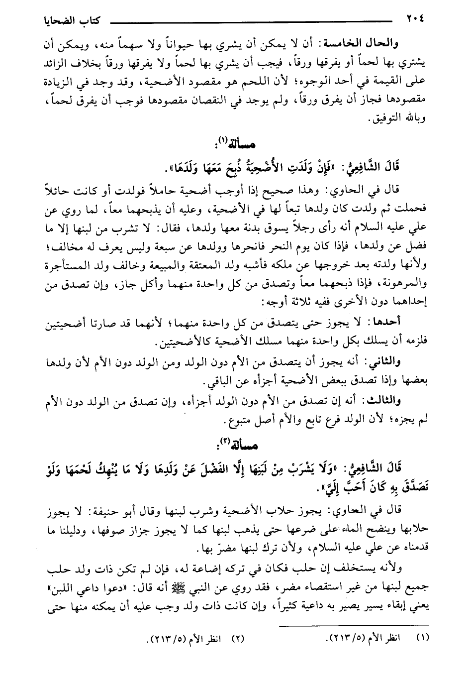 قال الشافعي: "فان ولدت الأضحية ذبح معها ولدها".