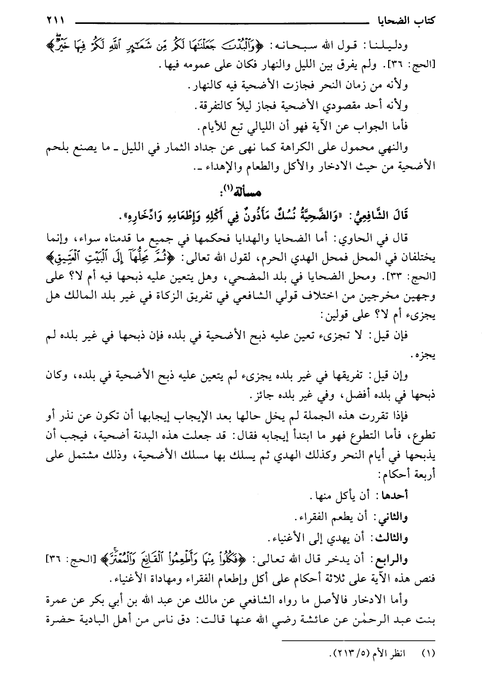 قال الشافعي: "والضحيه نسك مأذون في أكله وإطعامه وادخاره ".