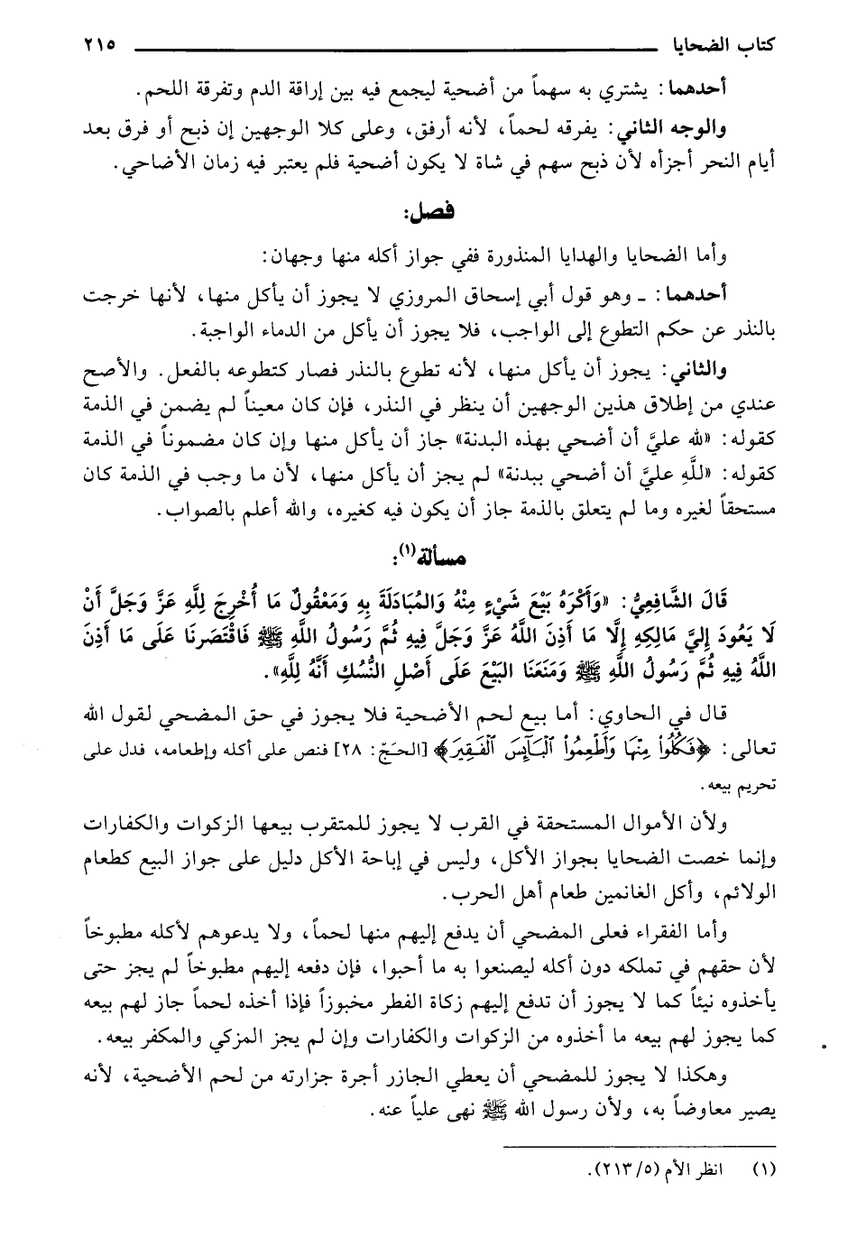 فال الشافعي: "وأكره بيع شيء منه والمبادلة به ومعقول ما أُخرج لله عز وجل أن لا يعود إلي مالكه إلا ما أذن الله عز وجل فيه ثم رسول الله - صلى الله عليه وسلم - فاقتصرنا على ما أذن الله فيه ثم رسول الله - صلى الله عليه وسلم - ومنعنا البيع على أصل النسك أنه لله ".