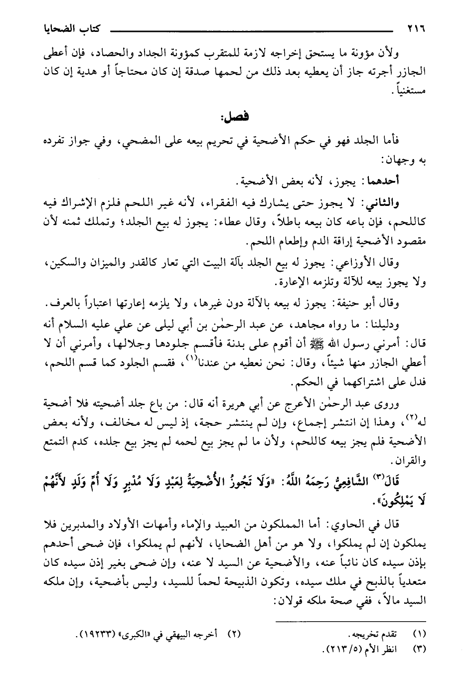 قال الشافعي رحمه الله: "ولا تجوز الأضحية لعبدٍ ولا مدبر ولا أم ولد لأنهم لا يملكون".