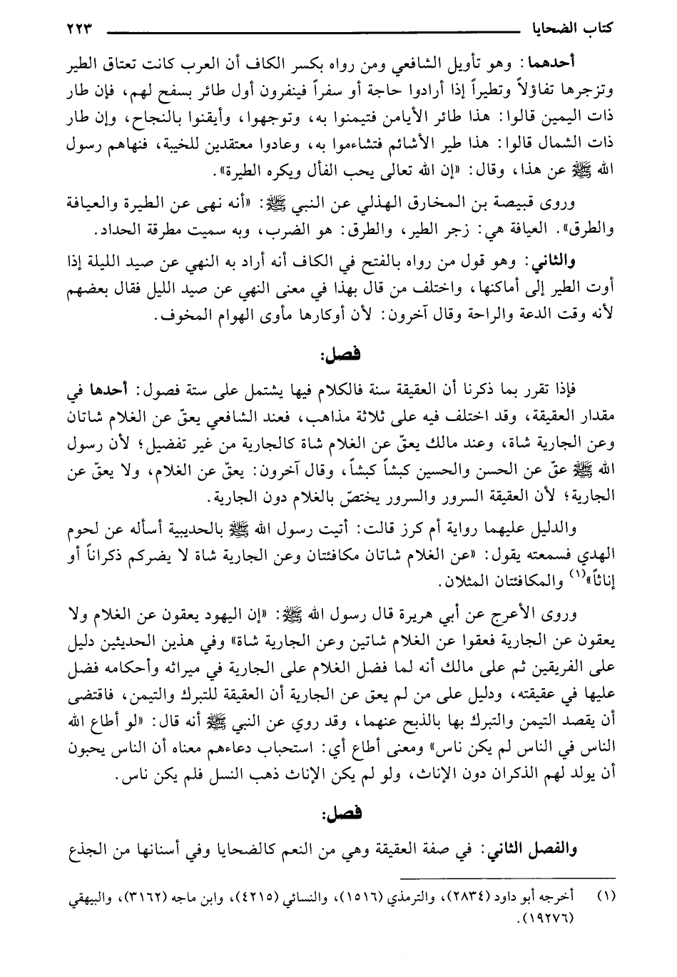 والفصل الثاني: في صفة العقيقة وهي من النعم كالضحايا وفي أسنانها من الجذع
