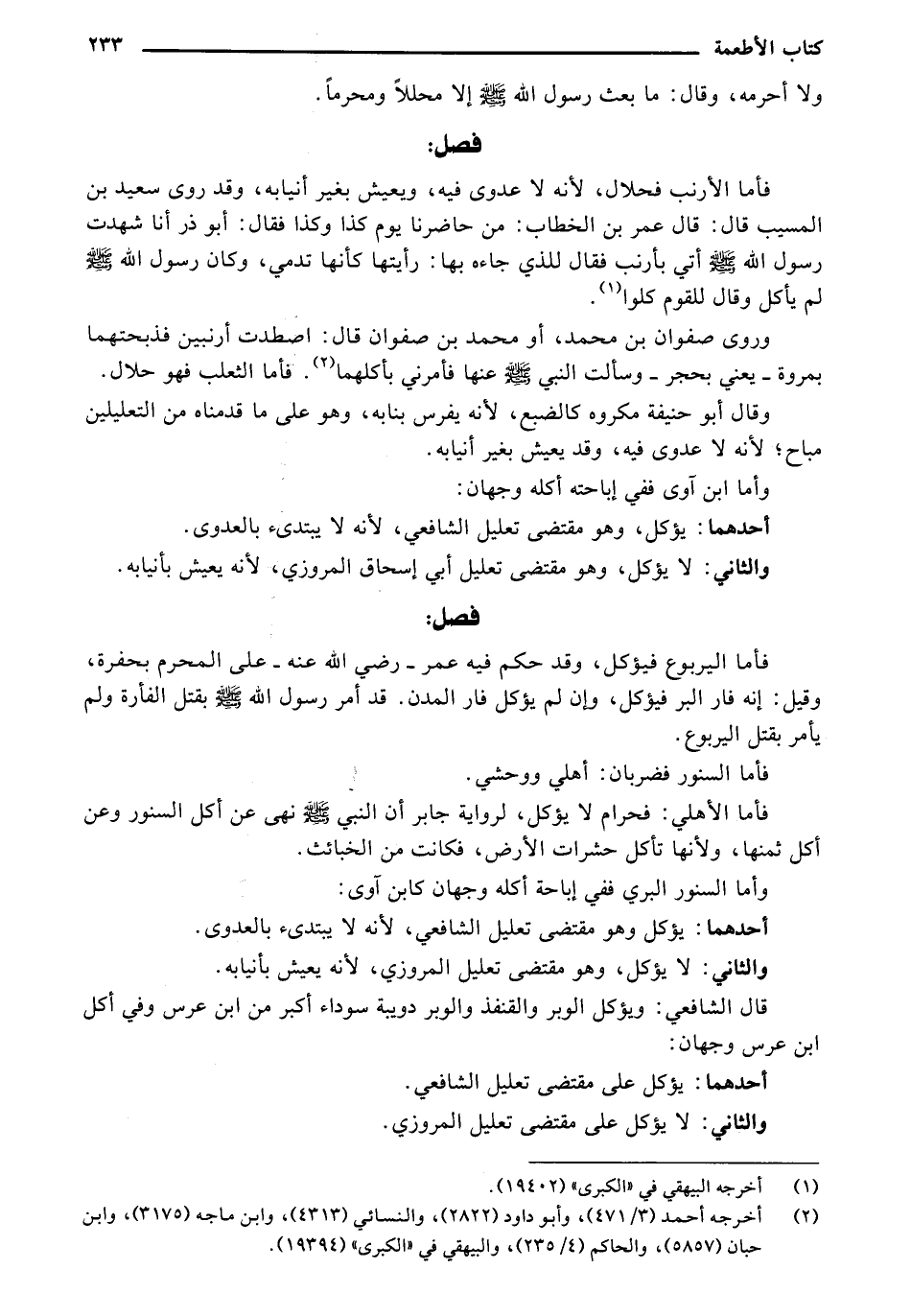 وروى صفوان بن محمد، أو محمد بن صفوان قال: اصطدت أرنبين فذبحتهما بمروة - يعني بحجر - وسألت النبي - صلى الله عليه وسلم - عنها فأمرني بأكلهما. فأما الثعلب فهو حلال.