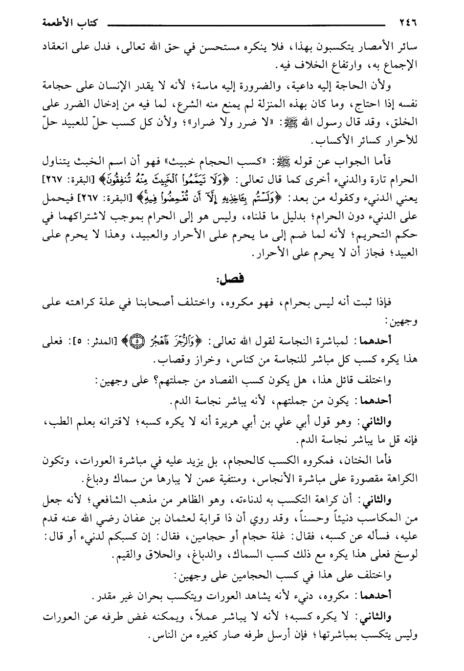 والثاني: وهو قول أبي علي بن أبي هريرة أنه لا يكره كسبه، لاقترانه بعلم الطب، فإنه قل ما يباشر نجاسة الدم.
