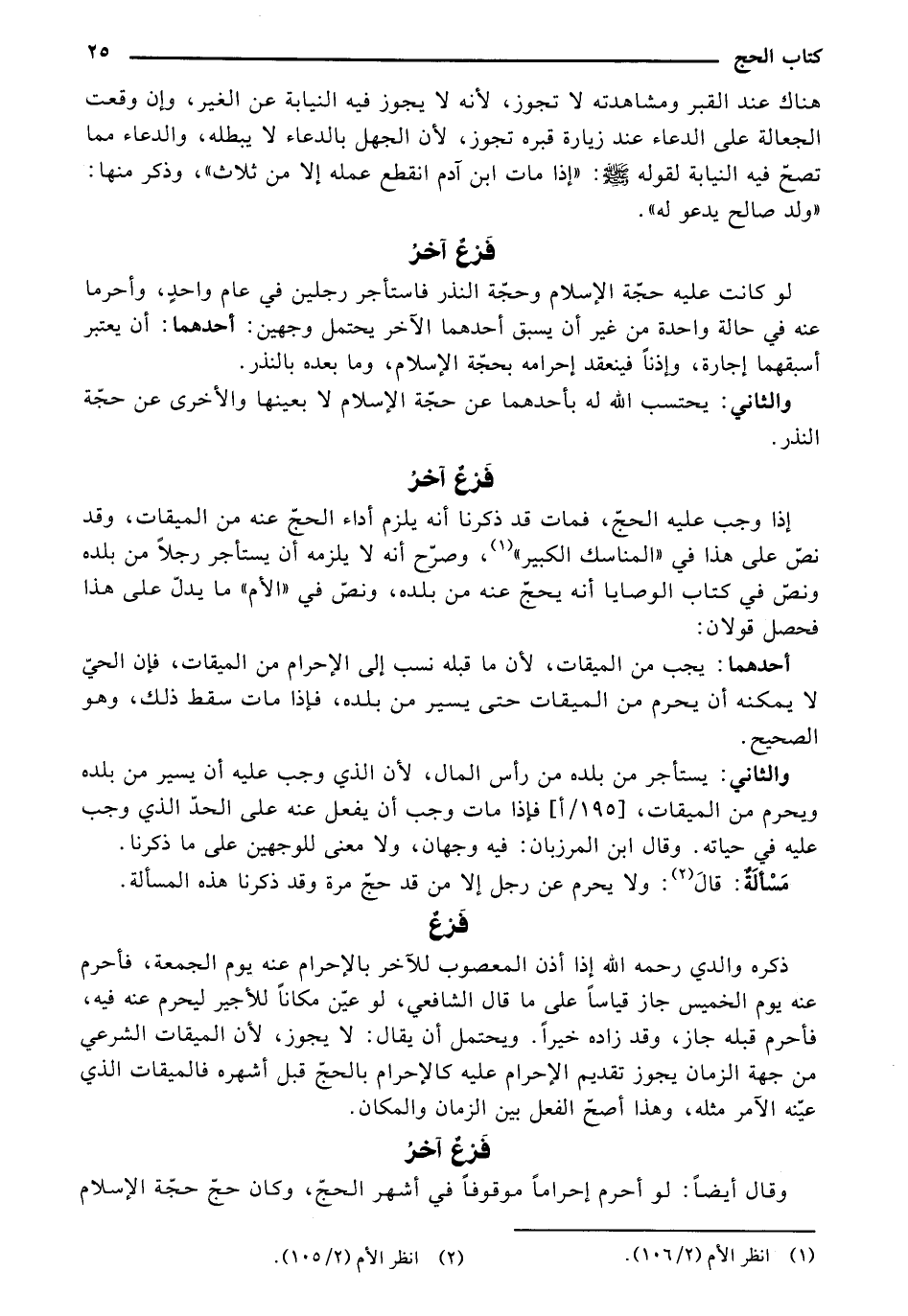 لو كانت عليه حجة الإسلام وحجة النذر فاستأجر رجلين في عام واحد، وأحرما عنه في حالة واحدة من غير أن يسبق أحدهما الآخر يحتمل وجهين: أحدهما: أن يعتبر أسبقهما إجارة، وإذناً فينعقد إحرامه بحجة الإسلام، وما بعده بالنذر.